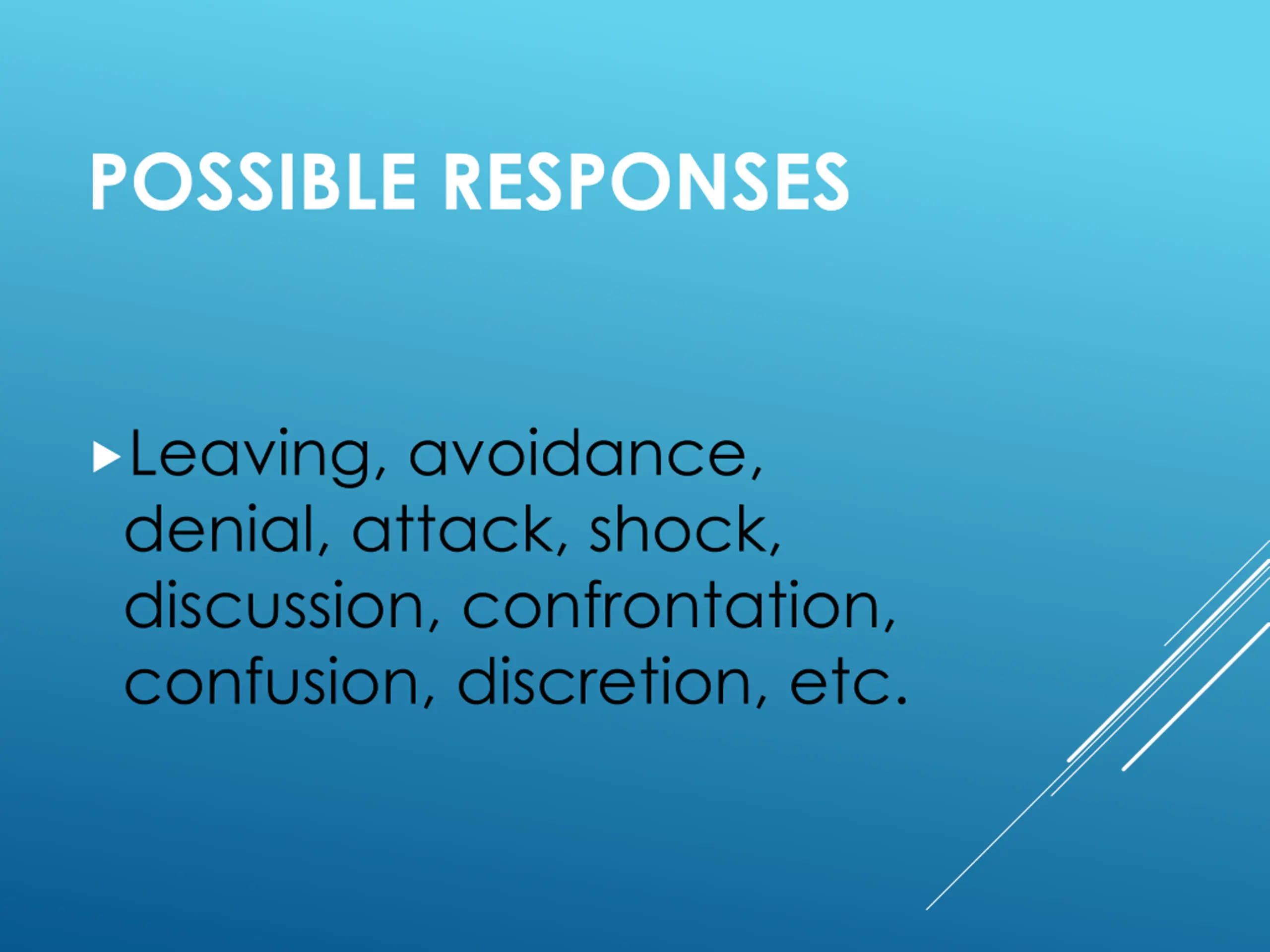 POSSIBLE RESPONSES Leaving, avoidance, denial, attack, shock, discussion, confrontation, confusion, discretion, etc.