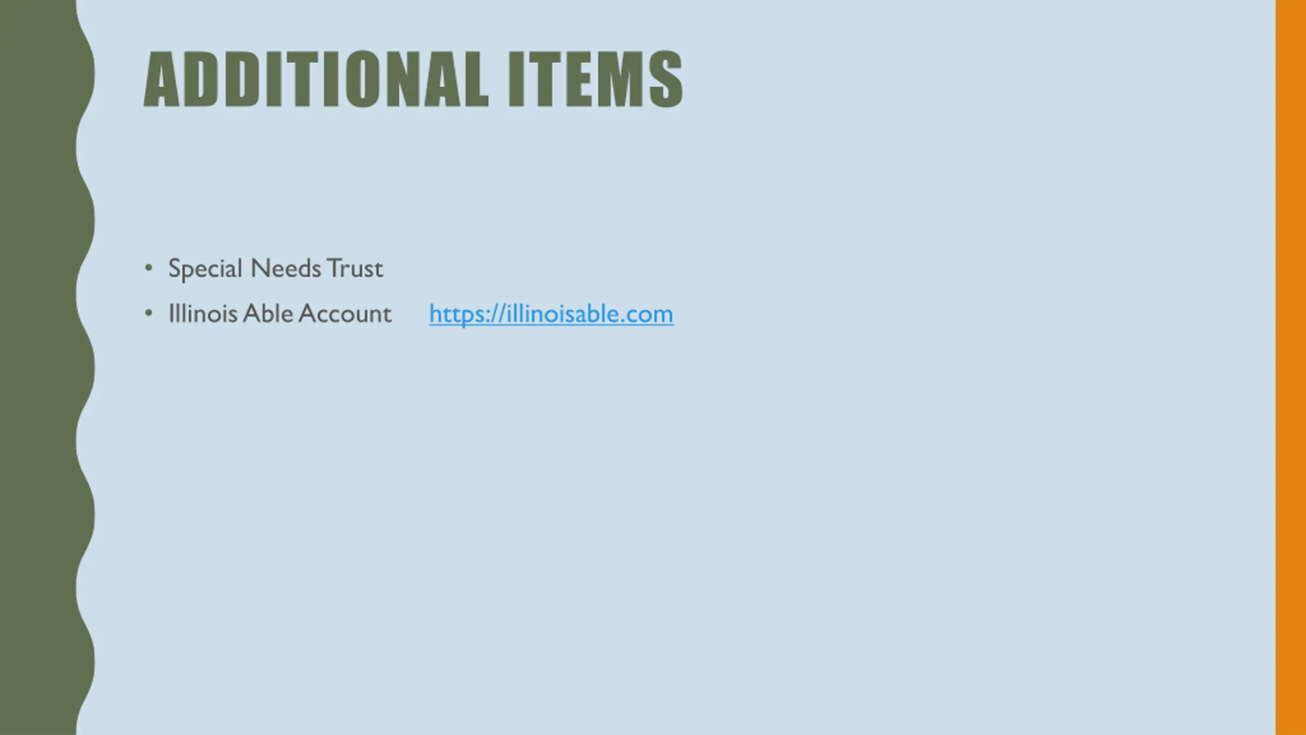 ADDITIONAL ITEMS Special Needs Trust Illinois Able Account https://illinoisable.com