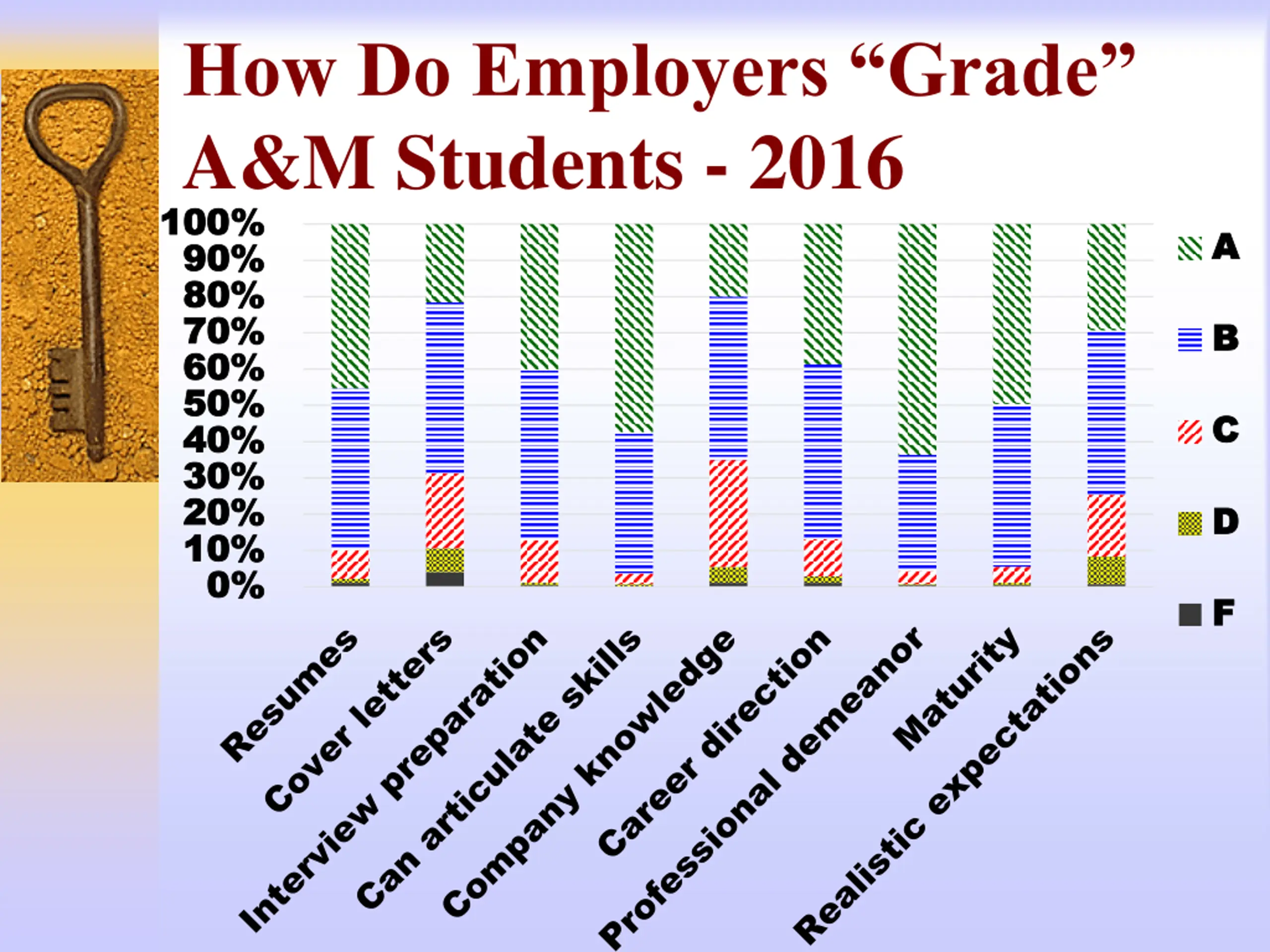 How Do Employers Grade A&M Students - 2016 100% 100% A A 90% 90% 80% 80% 70% 70% B B 60% 60% 50% 50% C C 40% 40% 30% 30% 20% 20% D D 10% 10% 0% 0% F F