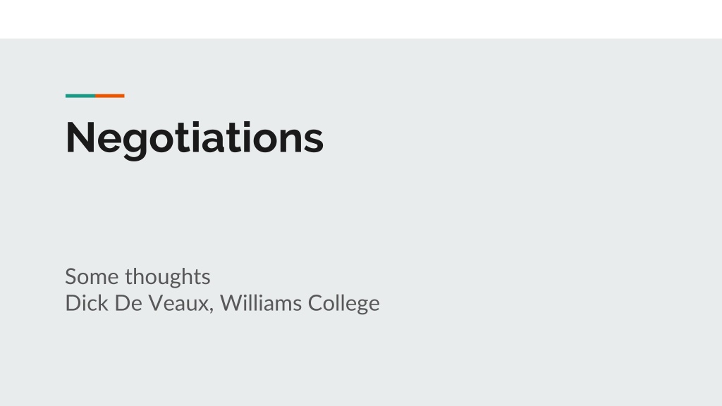 Negotiations Some thoughts Dick De Veaux, Williams College