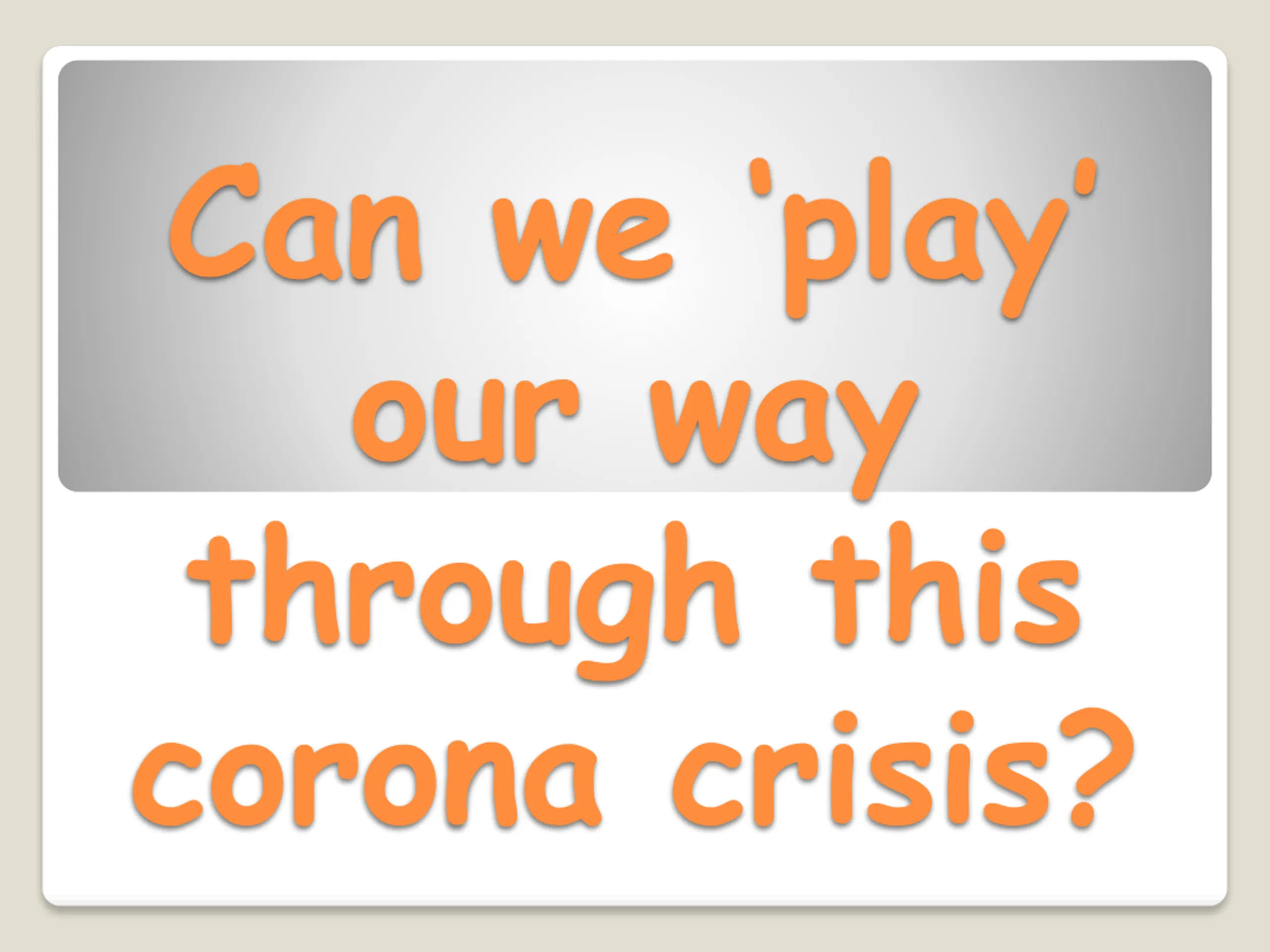 Can we play our way through this corona crisis?