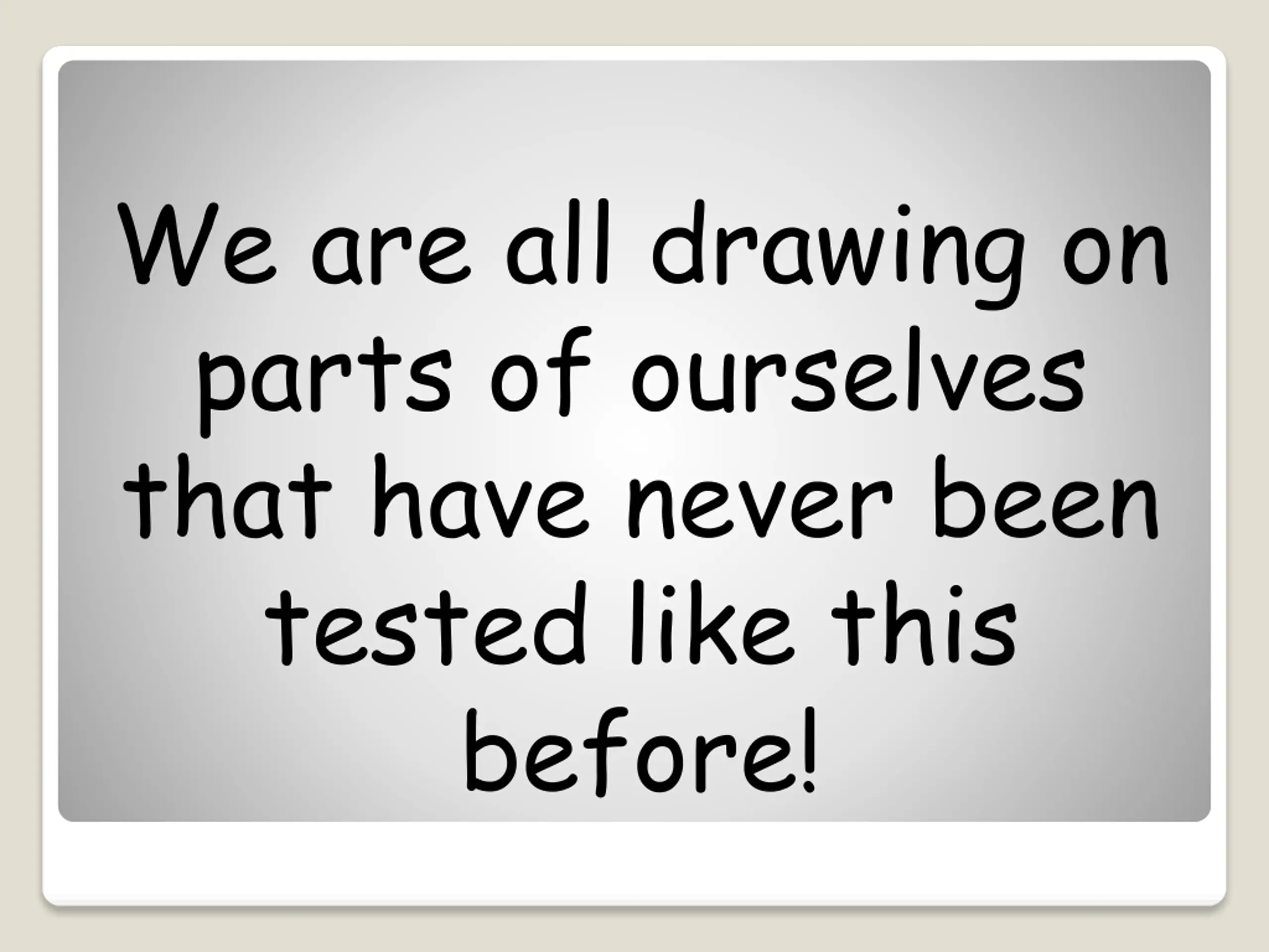 We are all drawing on parts of ourselves that have never been tested like this before!