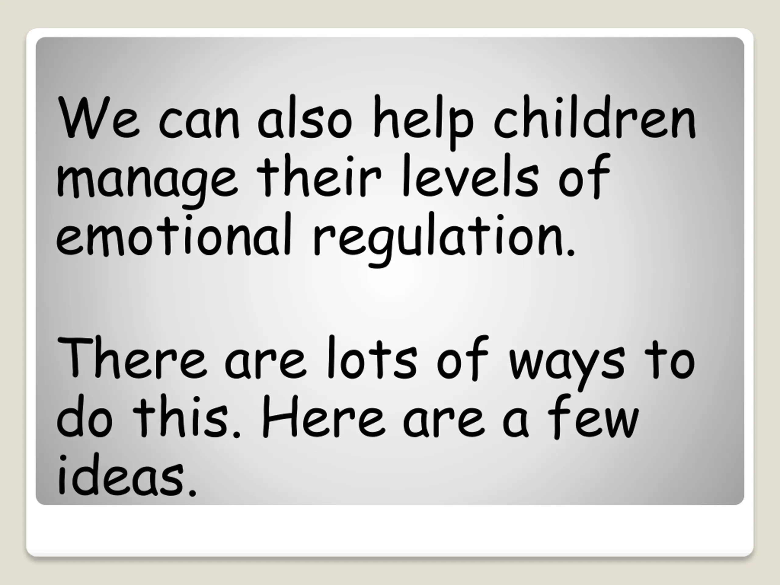 We can also help children manage their levels of emotional regulation. There are lots of ways to do this. Here are a few ideas.