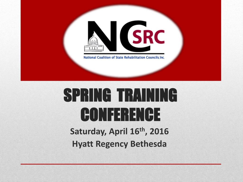 NCSRC Training Conference – Bethesda April 2016 Overview