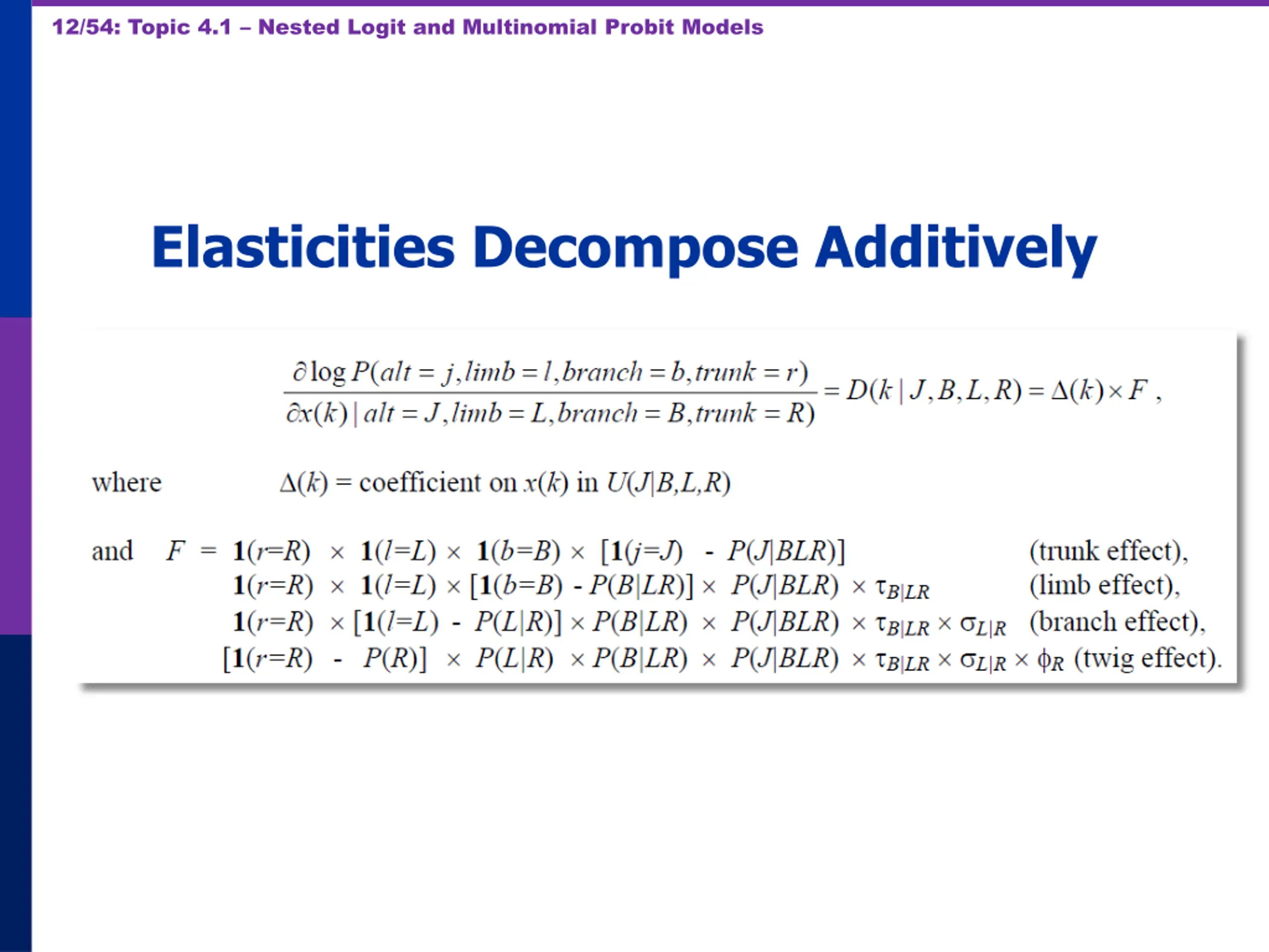 12/54: Topic 4.1 Nested Logit and Multinomial Probit Models Elasticities Decompose Additively