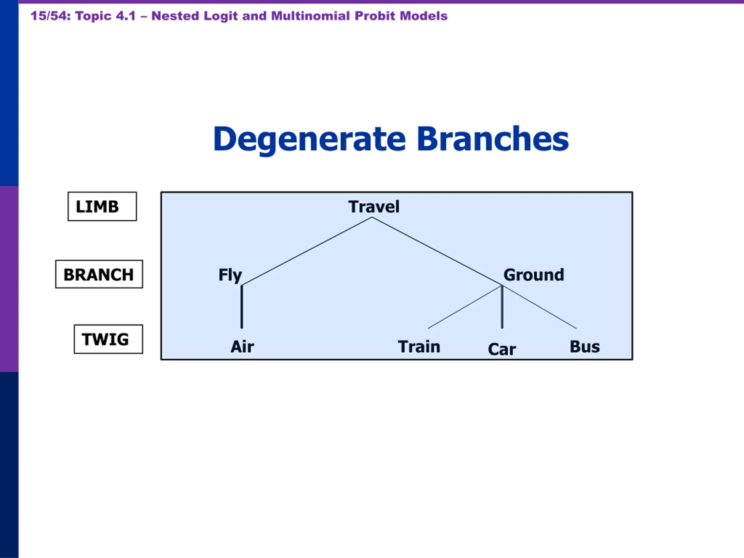 15/54: Topic 4.1 Nested Logit and Multinomial Probit Models Degenerate Branches LIMB Travel BRANCH Fly Ground TWIG Air Train Bus Car