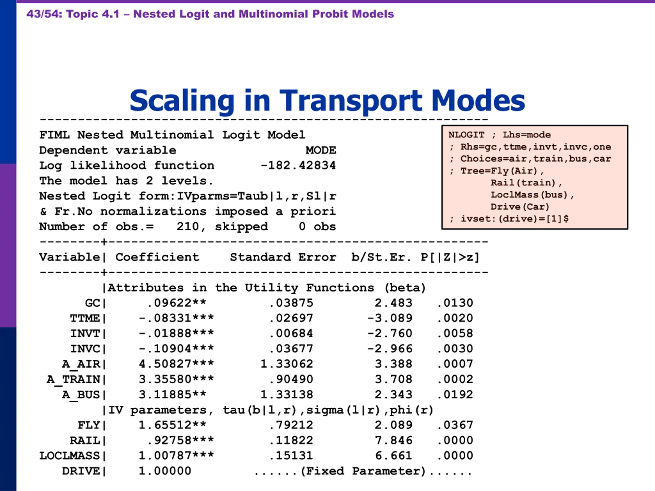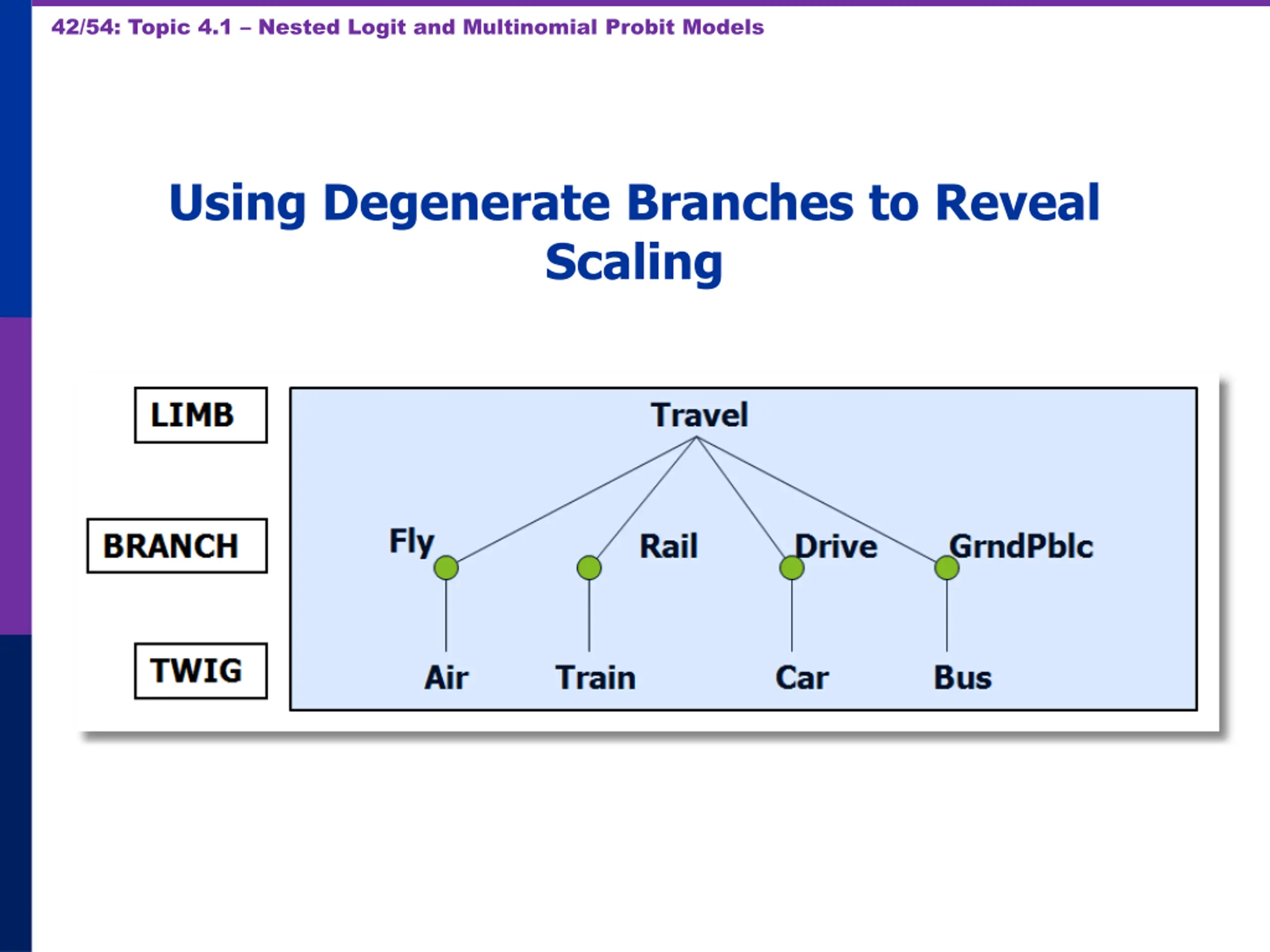 42/54: Topic 4.1 Nested Logit and Multinomial Probit Models Using Degenerate Branches to Reveal Scaling