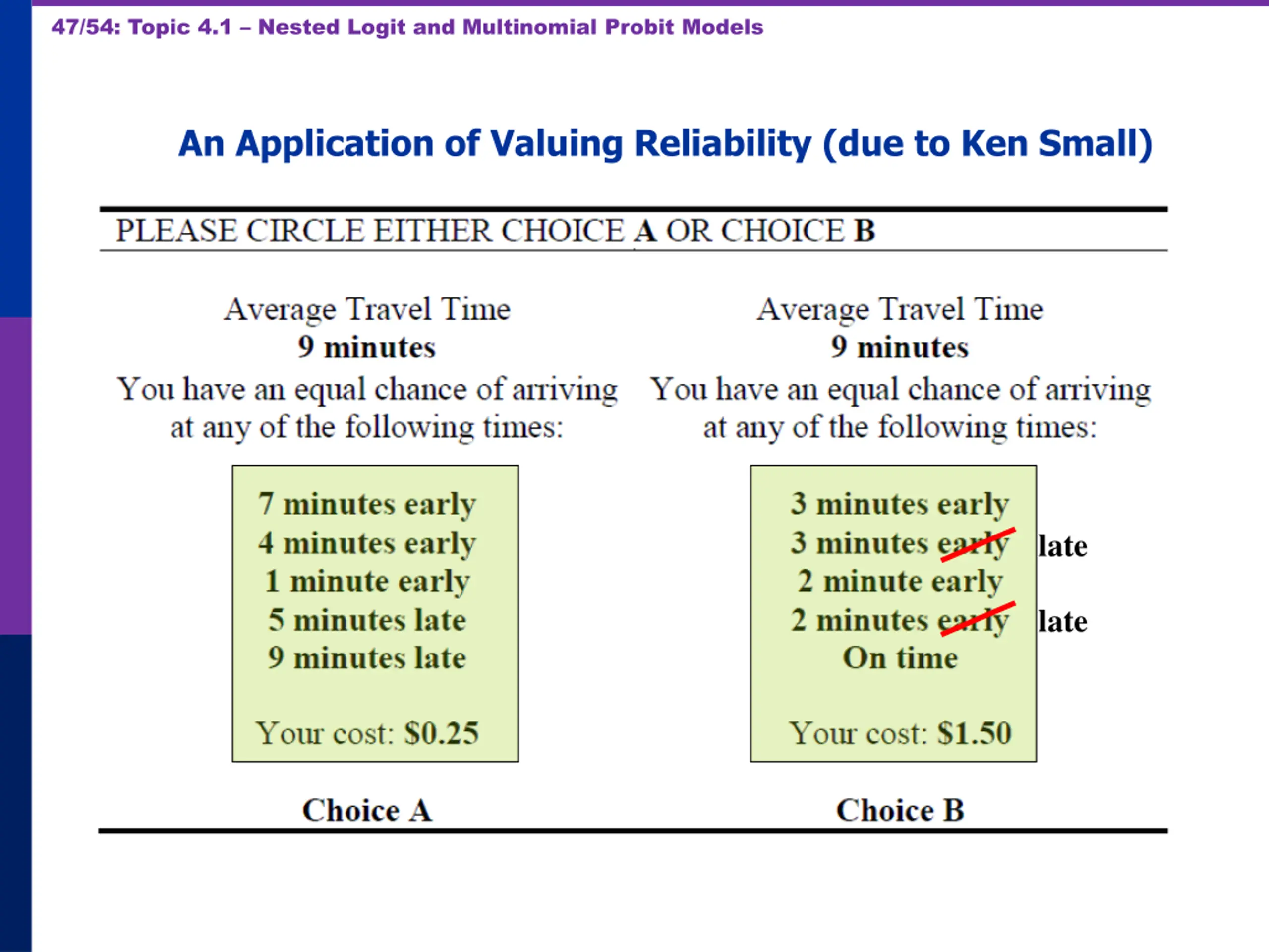 47/54: Topic 4.1 Nested Logit and Multinomial Probit Models An Application of Valuing Reliability (due to Ken Small) late late