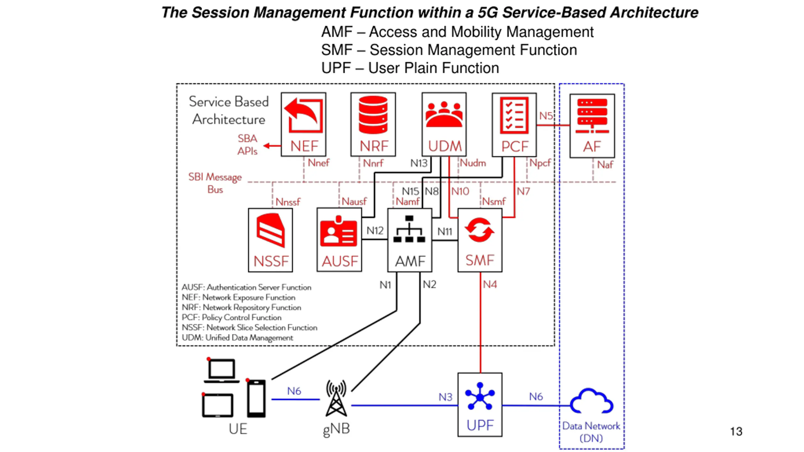 The Session Management Function within a 5G Service-Based Architecture AMF Access and Mobility Management SMF Session Management Function UPF User Plain Function 13