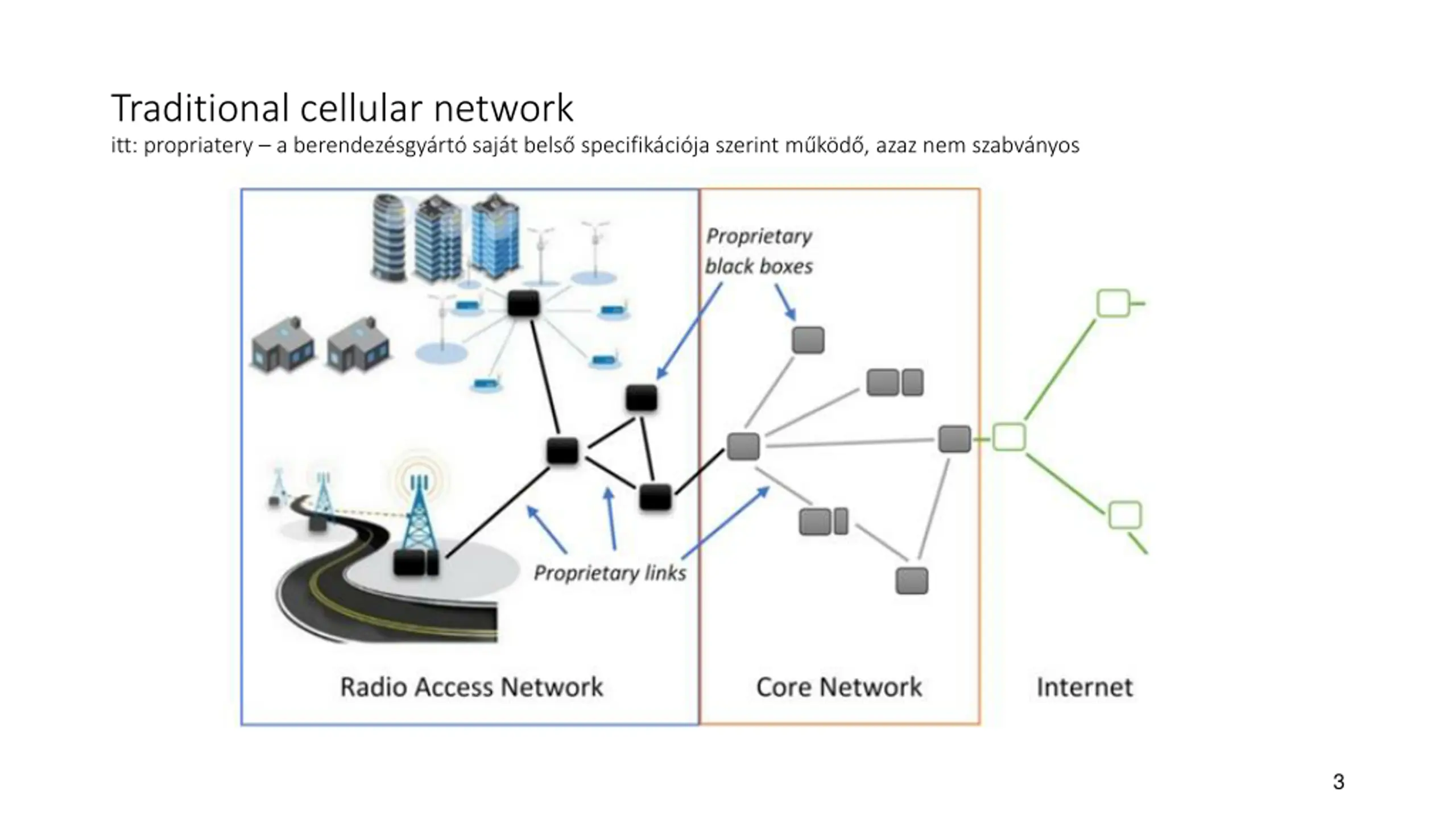 Traditional cellular network itt: propriatery a berendez sgy rt saj t bels specifik ci ja szerint m k d , azaz nem szabv nyos 3