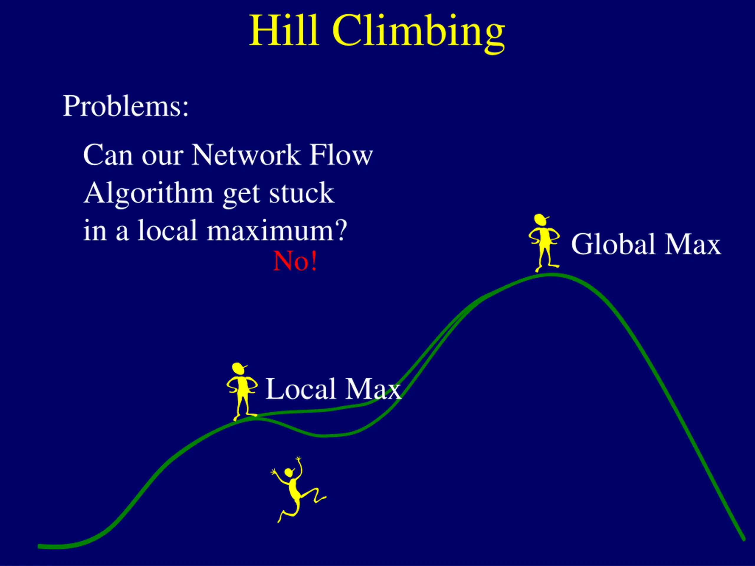 Hill Climbing Problems: Can our Network Flow Algorithm get stuck in a local maximum? Global Max No! Local Max