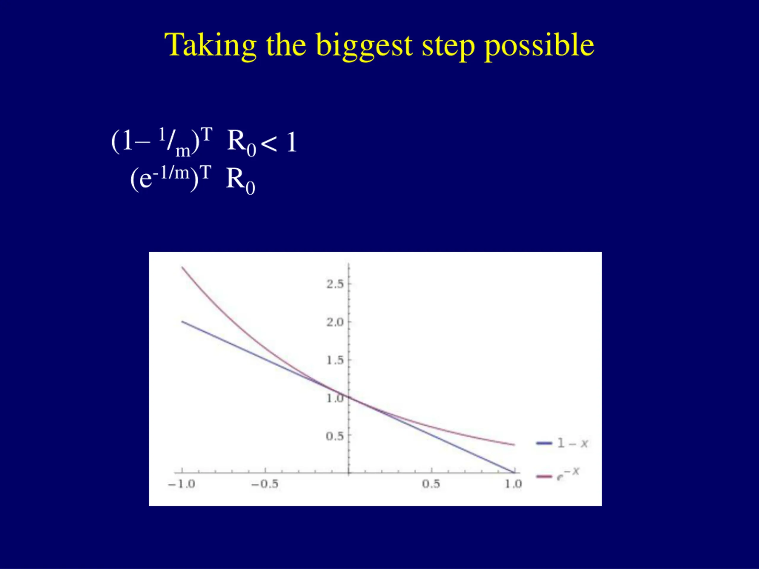 Taking the biggest step possible (1 1/m)T R0 (e-1/m)T R0 < 1