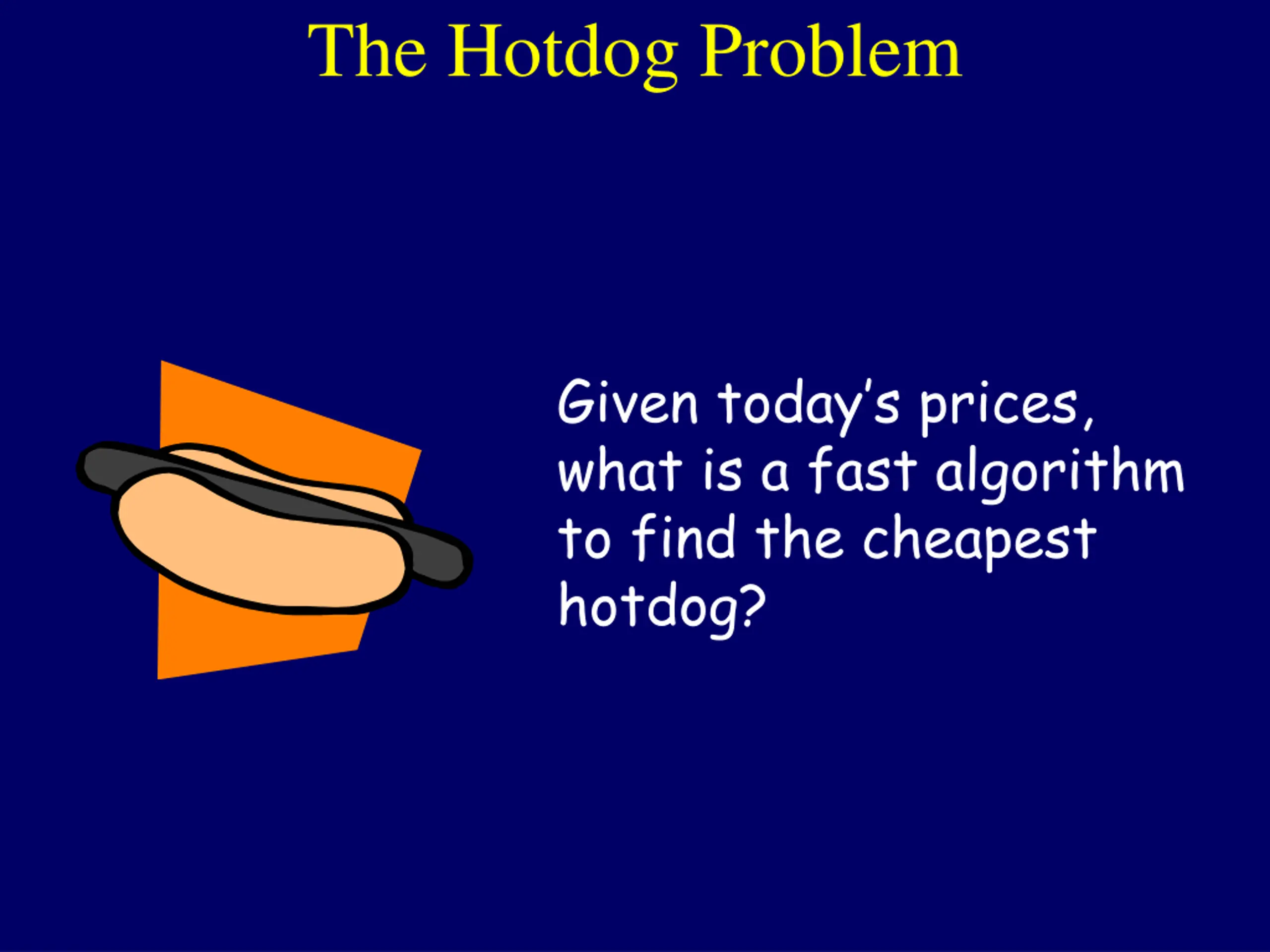 The Hotdog Problem Given today s prices, what is a fast algorithm to find the cheapest hotdog?