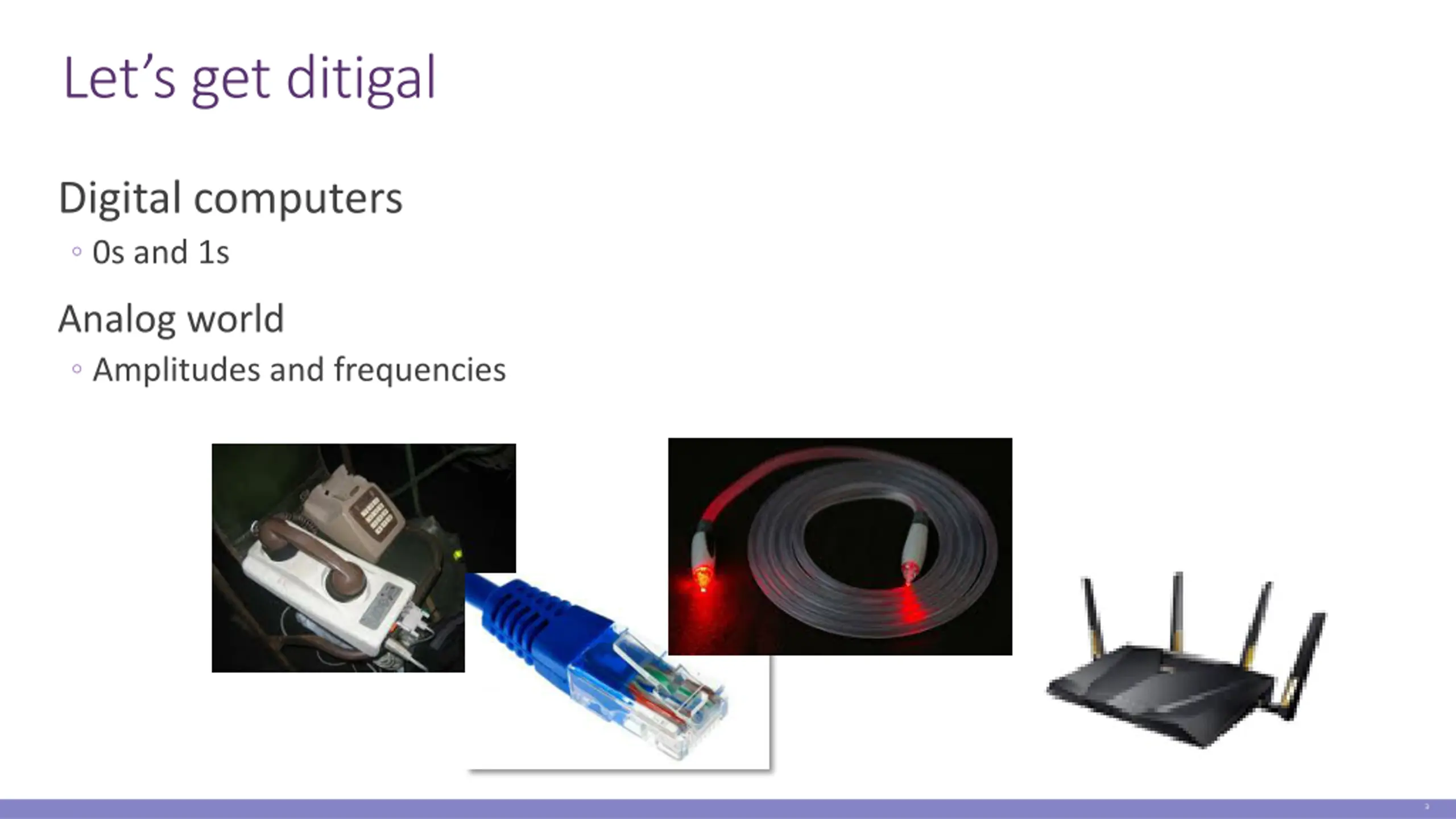 Lets get ditigal Digital computers 0s and 1s Analog world Amplitudes and frequencies 3
