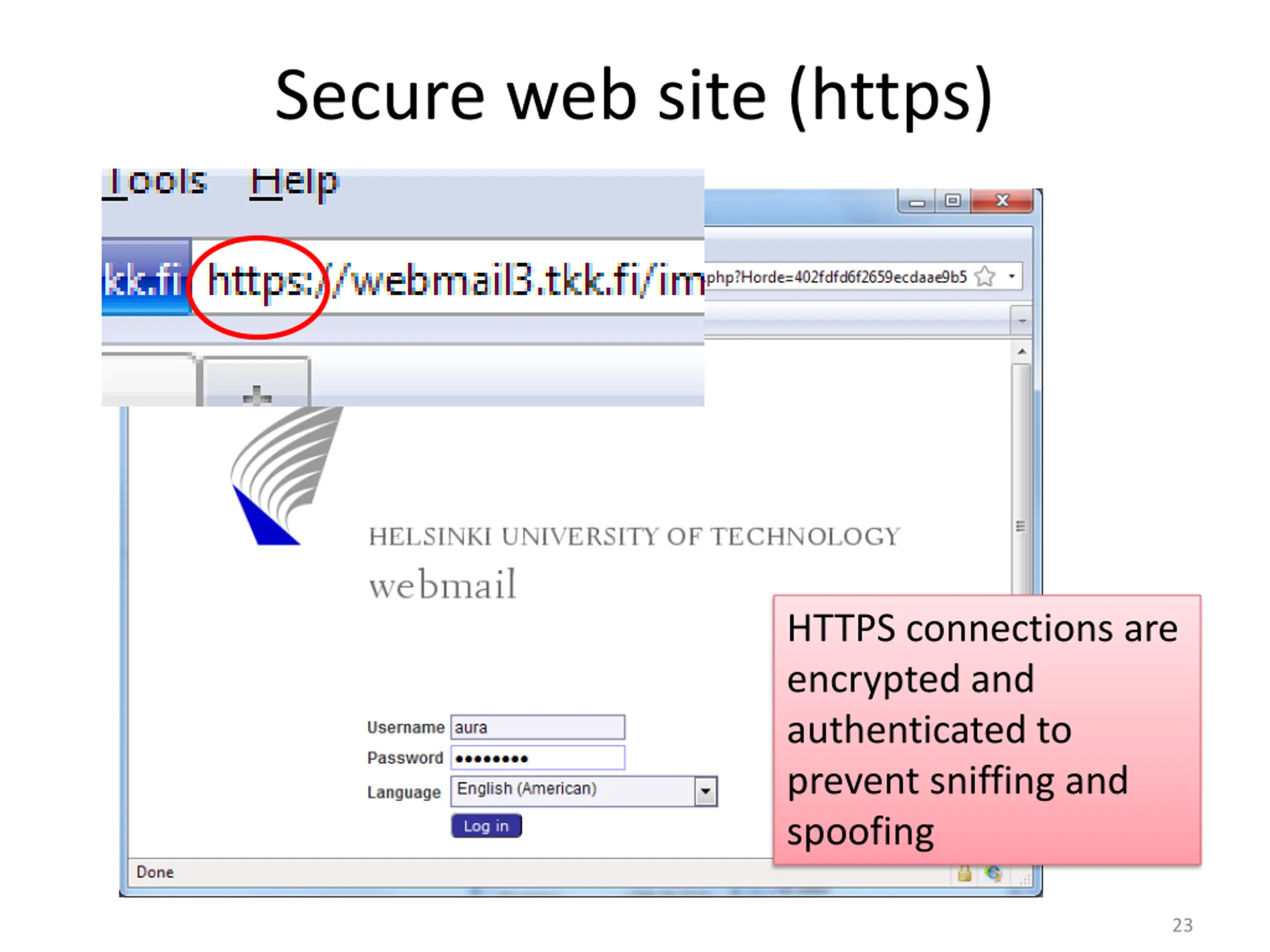 Secure web site (https) HTTPS connections are encrypted and authenticated to prevent sniffing and spoofing 23