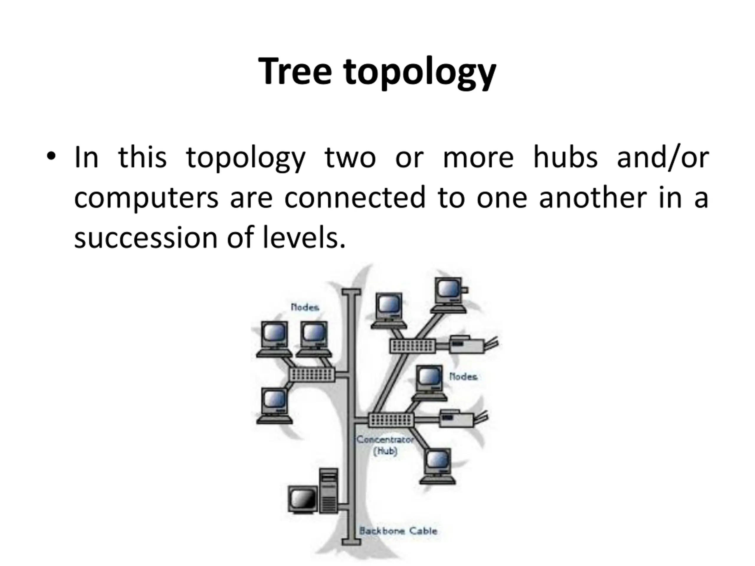 Tree topology In this topology two or more hubs and/or computers are connected to one another in a succession of levels.