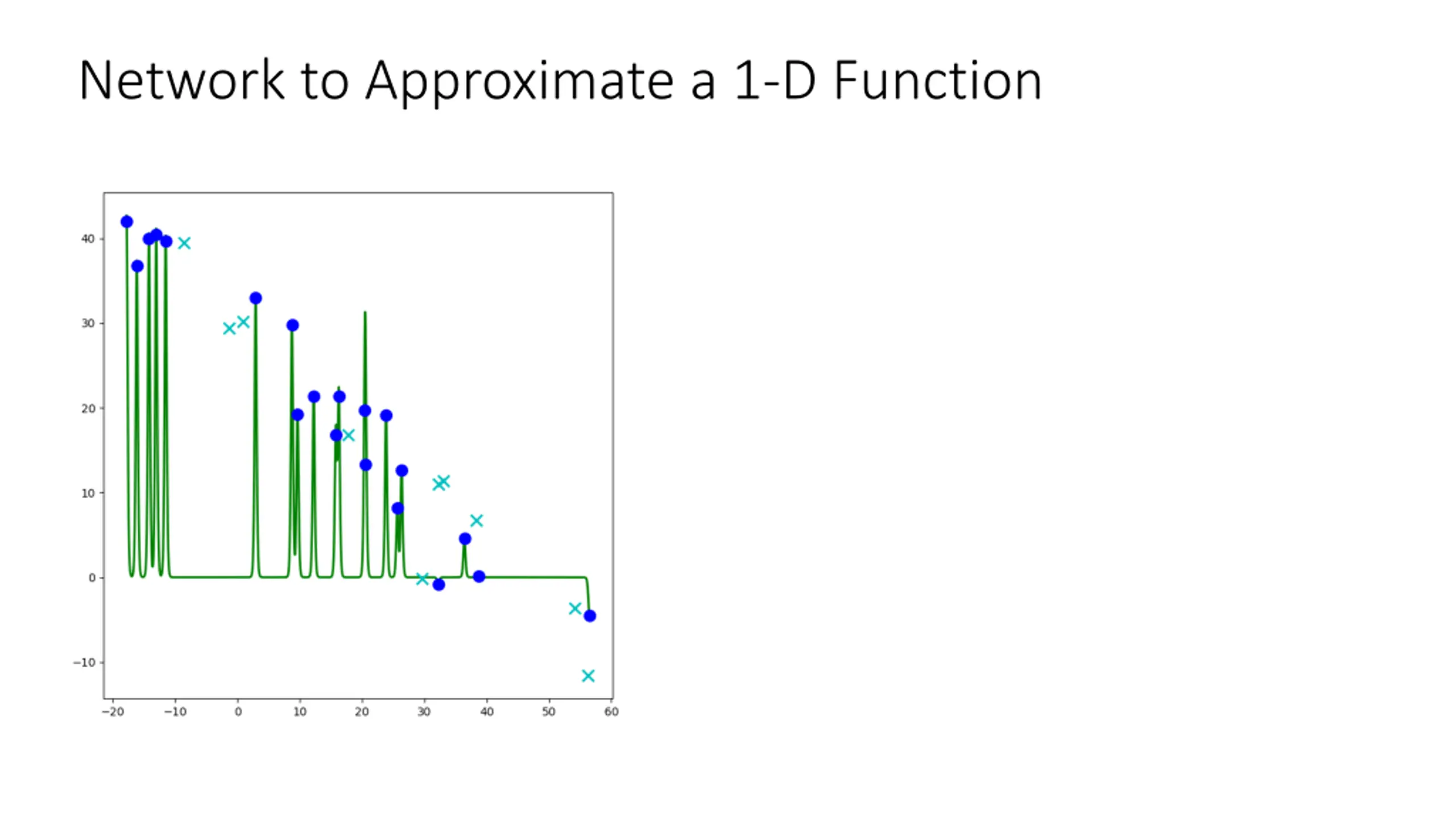 Network to Approximate a 1-D Function Design a network to approximate this function using: Linear, Sigmoid, Step, or ReLU