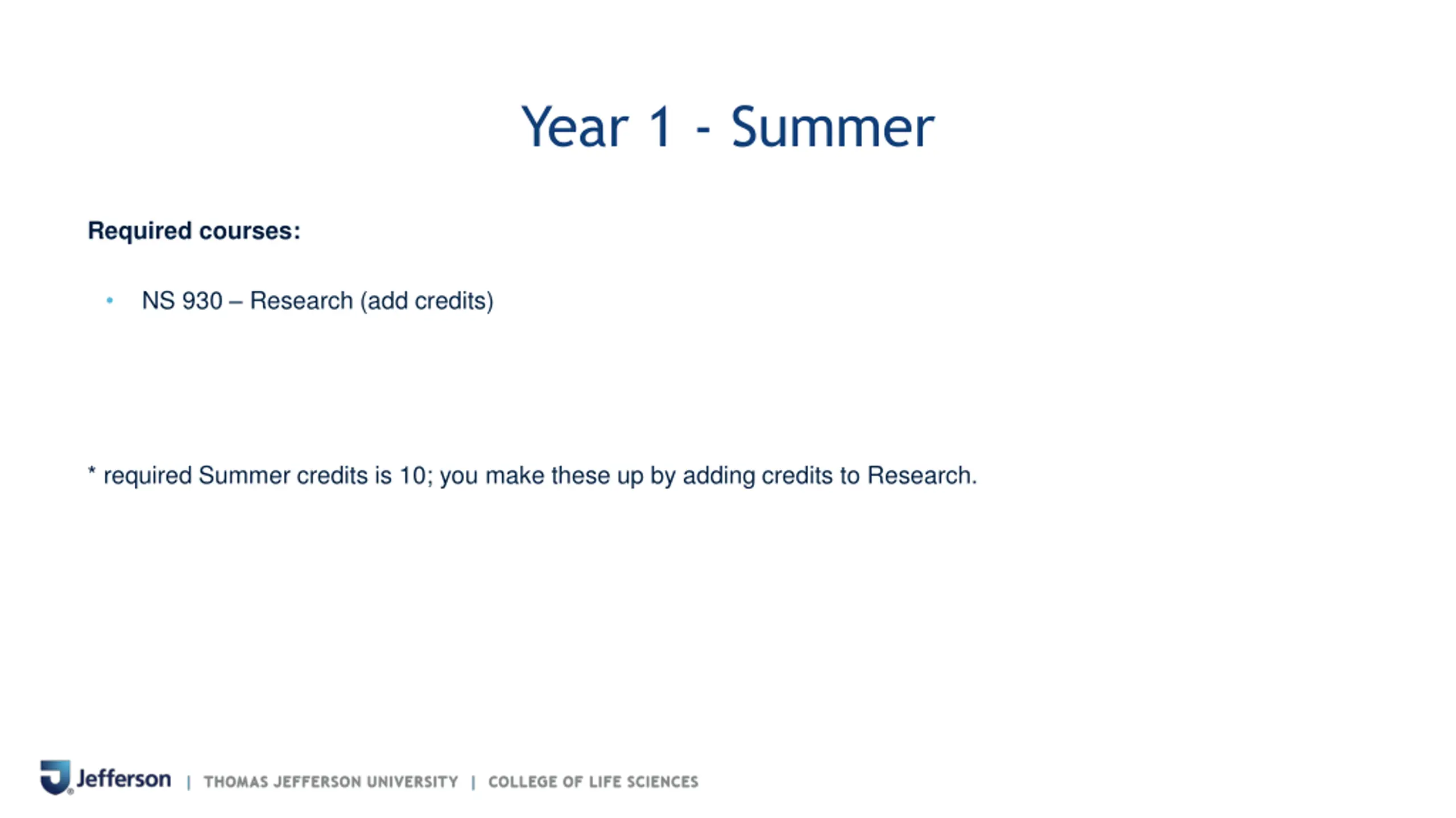 Year 1 - Summer Required courses: NS 930 Research (add credits) * required Summer credits is 10; you make these up by adding credits to Research.