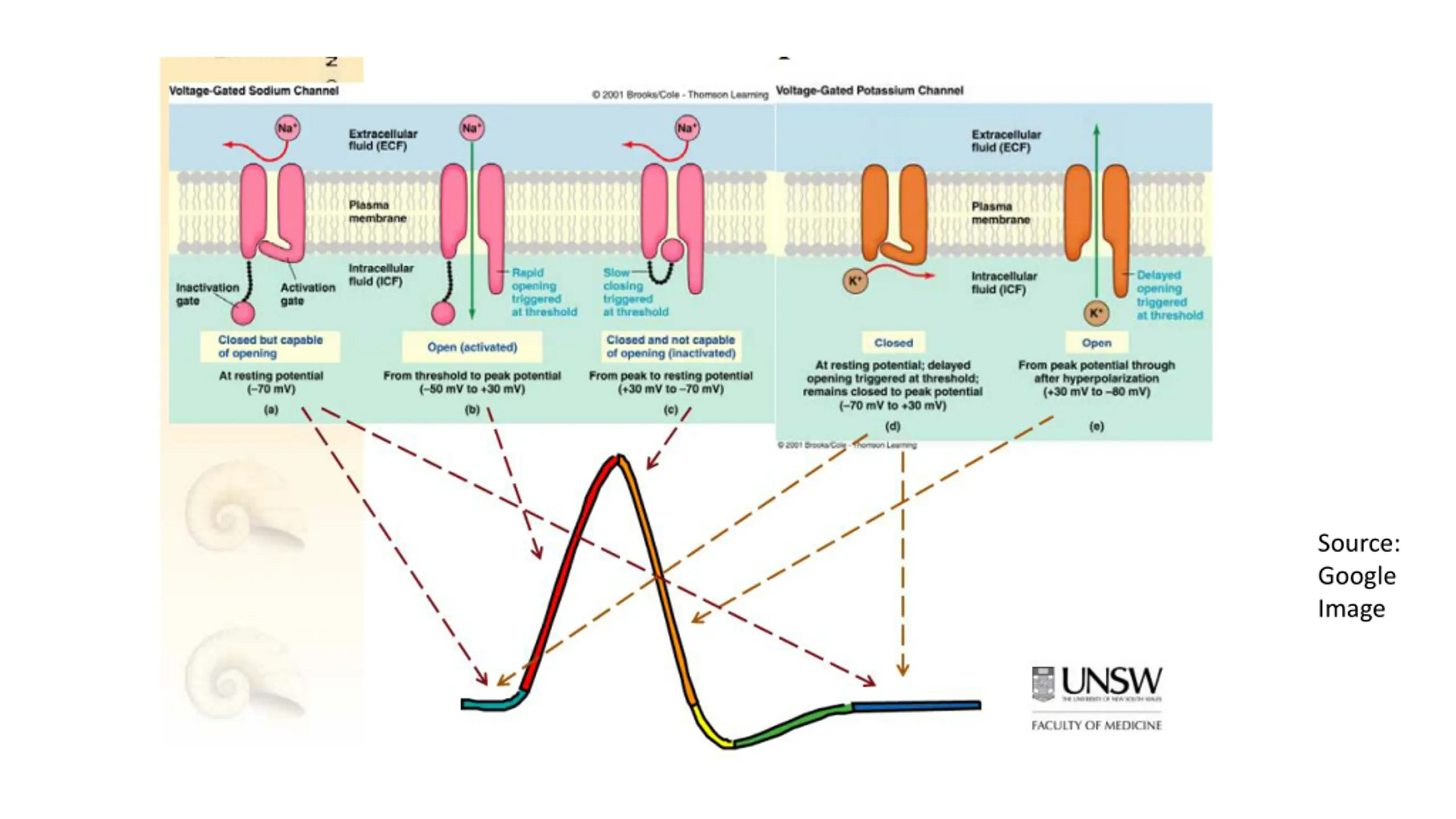 Na and cl ion are present in higher concentration in the extracellular fluid than in the axoplasm, but axonal membrane at rest is considerably less permeable to these ion; hence their contribution to resting potential is less. These ion gradient is maintained by active transporter Na/K ATPase activated by Na at the inner and K at the outer surface of the membrane. In response to depolarisation at threshold level, an action potential or nerve impulse is generated at the local region of membrane.