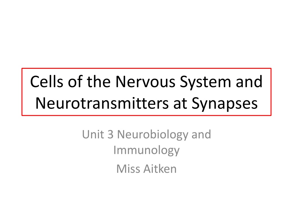 Cells of the Nervous System and Neurotransmitters at Synapses Unit 3 Neurobiology and Immunology Miss Aitken
