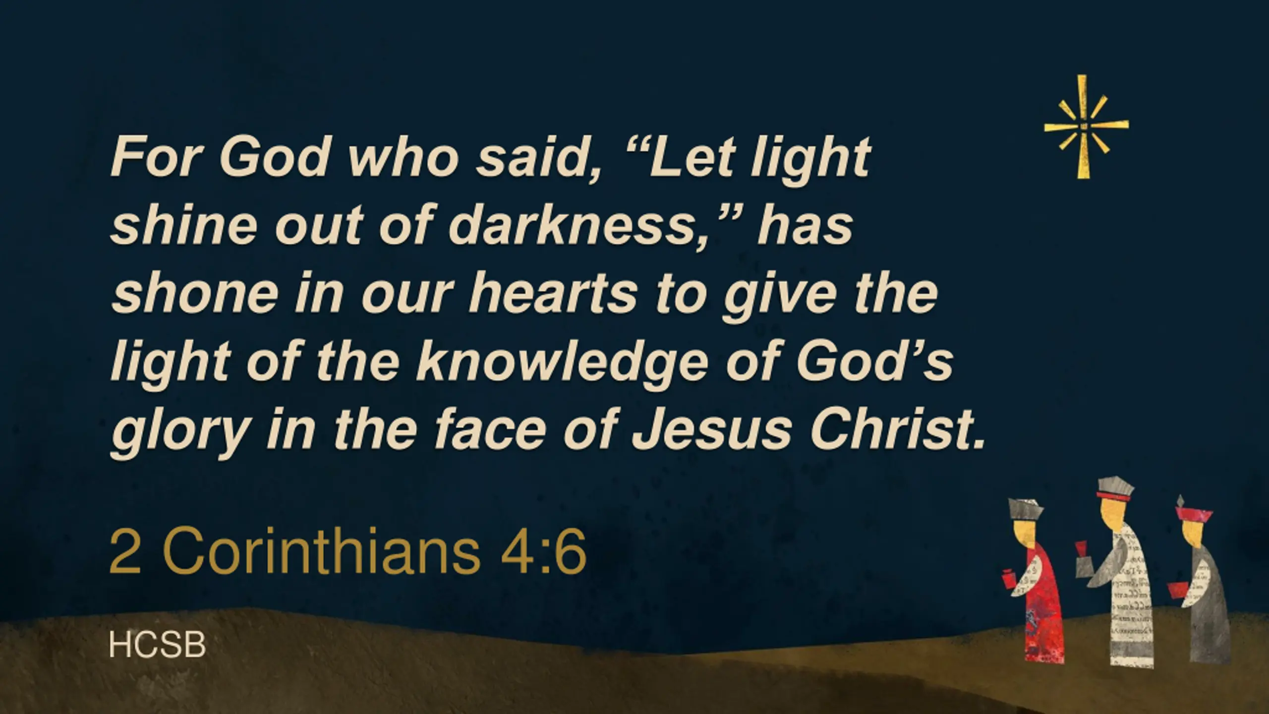 For God who said, Let light shine out of darkness, has shone in our hearts to give the light of the knowledge of God s glory in the face of Jesus Christ. 2 Corinthians 4:6 HCSB