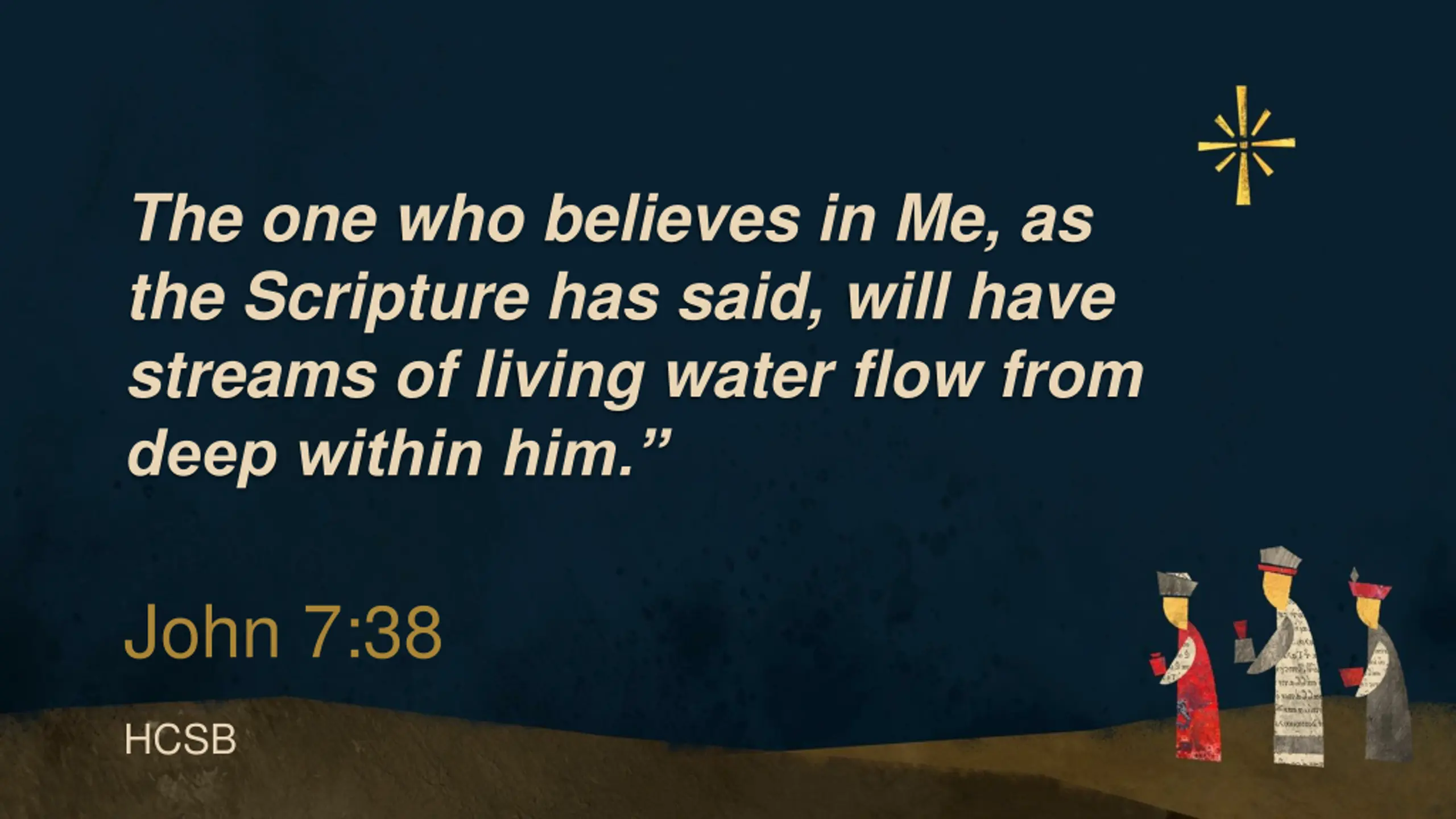 The one who believes in Me, as the Scripture has said, will have streams of living water flow from deep within him. John 7:38 HCSB
