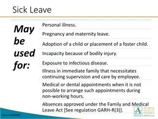 Use of Paid Sick Leave How Can Paid Sick Leave be Used? Illness of employee or family member (physical or mental health) SAFE Act absences (involving domestic violence or sexual violence) Closure of business or school for public health emergency School meeting or meeting related to child s health condition or disability Definition of Family Member Any individual related by blood to an employee Spouse, domestic partner or civil union partner of employee or an employee s parent or grandparent Child or grandchild or legal ward of employee or employee s spouse, civil union or domestic partner Parent or grandparent or person who stood in loco parentis of employee or employee s spouse or civil union or domestic partner Sibling of employee or employee s spouse, civil union partner, or domestic partner Any other individual whose association with an employee is equivalent to a family relationship fisherphillips.com