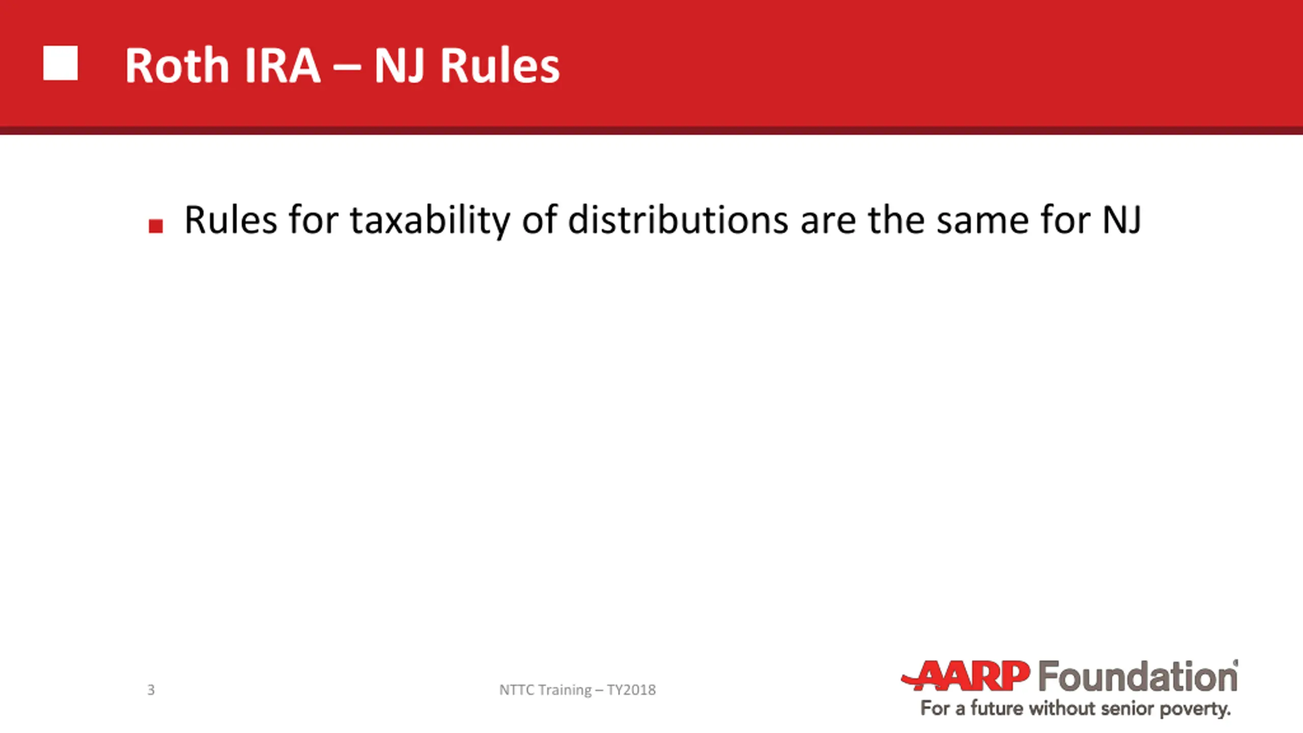 Roth IRA NJ Rules Rules for taxability of distributions are the same for NJ 3 NTTC Training TY2018