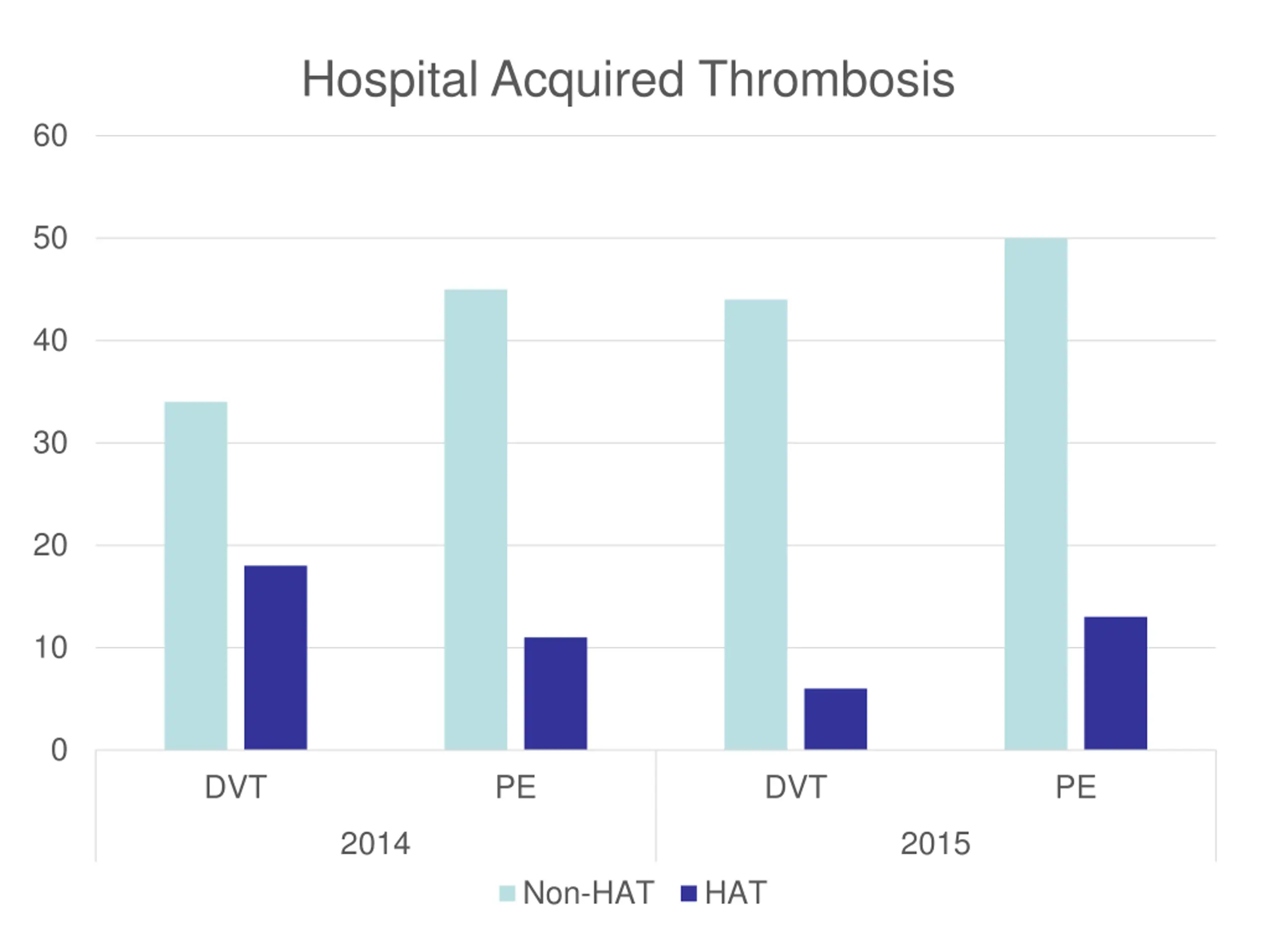 Hospital Acquired Thrombosis 60 50 40 30 20 10 0 DVT PE DVT PE 2014 2015 Non-HAT HAT
