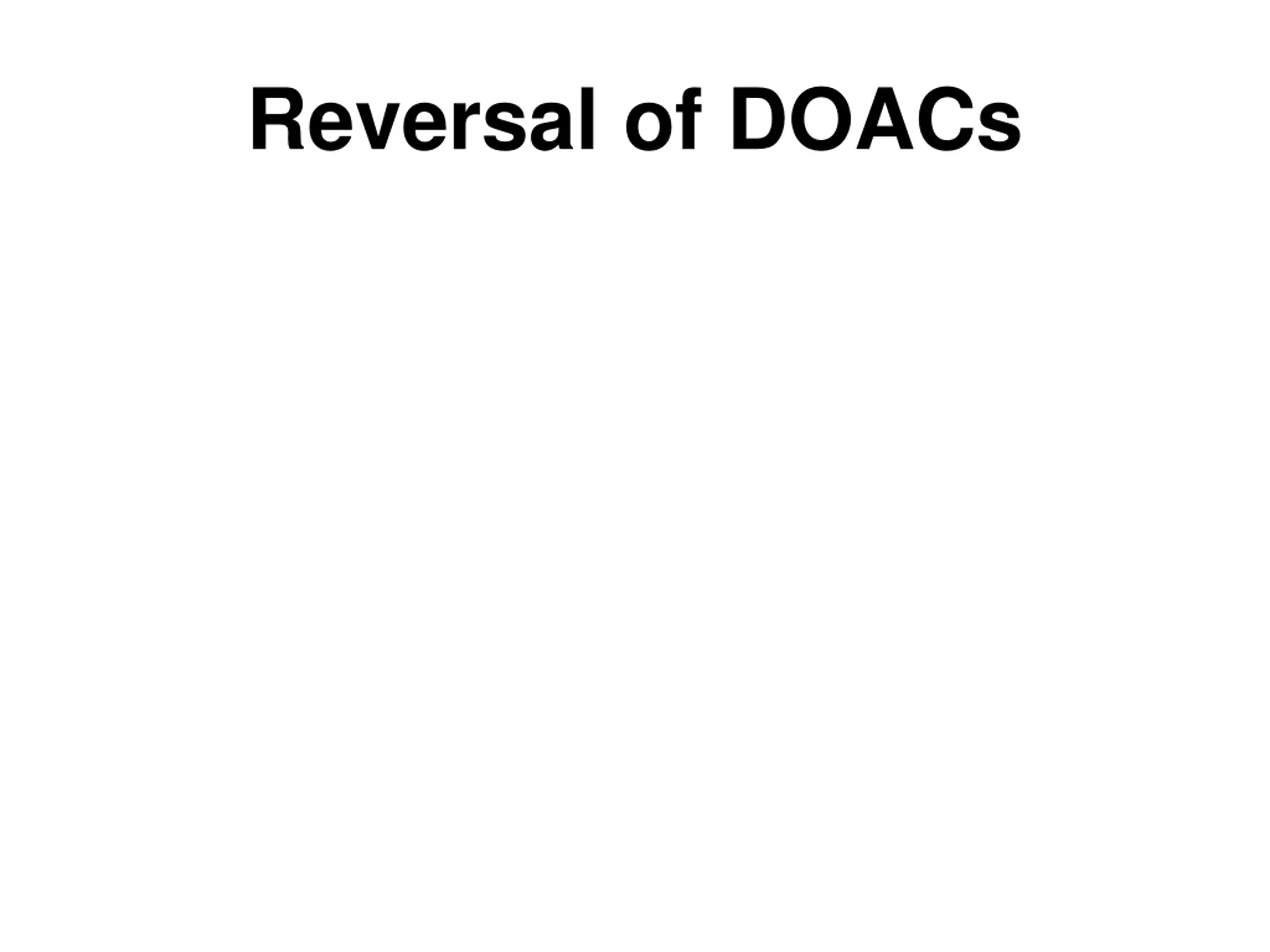Andexanet: Reversal of Factor Xa Inhibitors Recombinant engineered version of human factor Xa produced in CHO cells Acts as a FXa decoy : high affinity for all FXa inhibitors GLA domain removed to prevent anticoagulant effect Crowther M et al. oral presentation at AHA November 2014; Chicago, Illinois , USA.