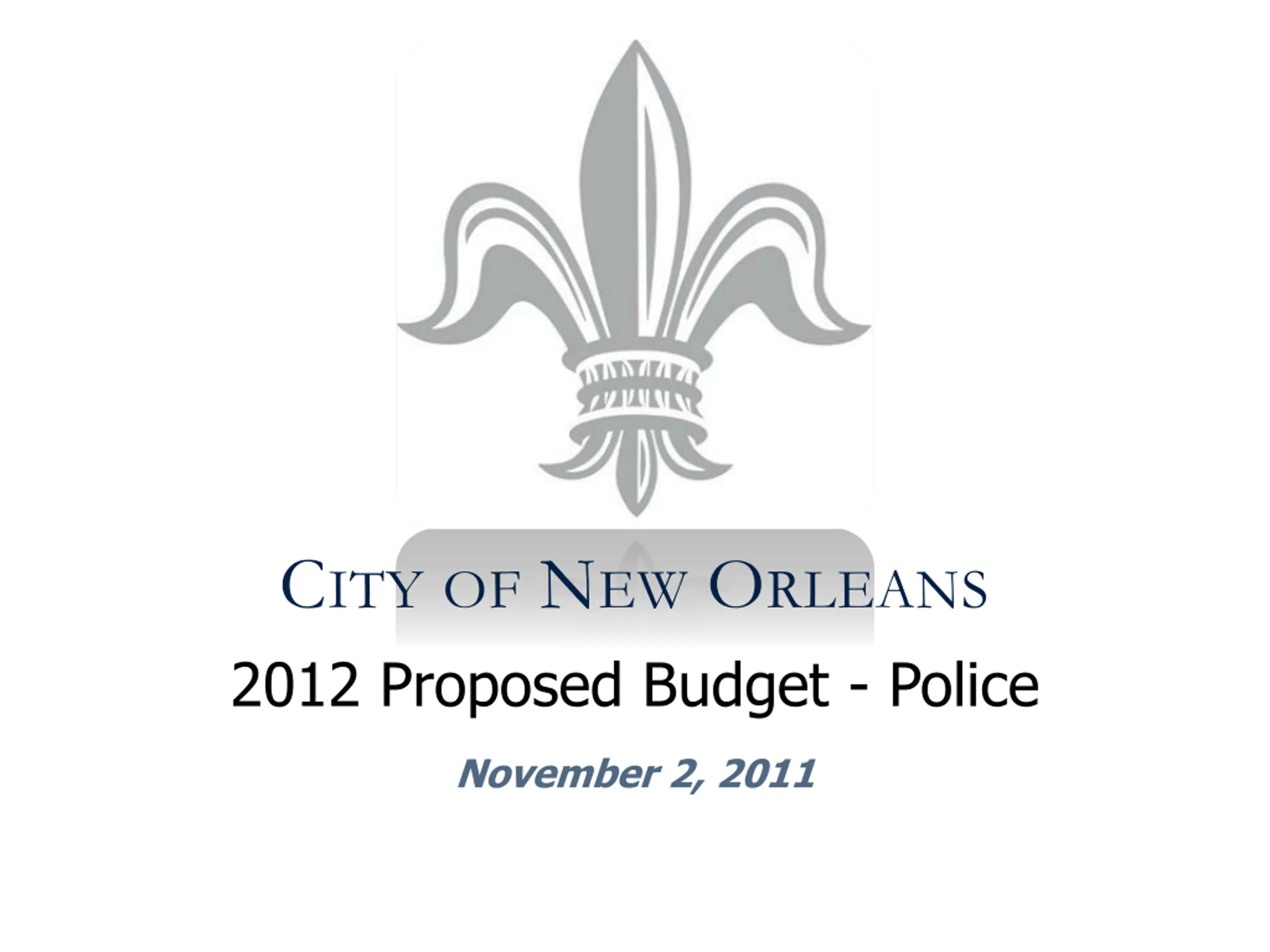 CITY OF NEW ORLEANS 2012 Proposed Budget - Police November 2, 2011