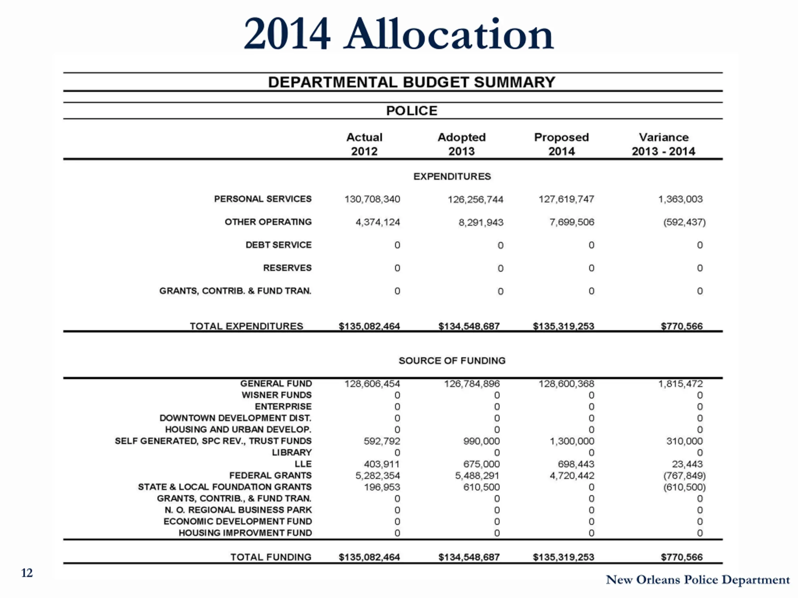 New Orleans Police Department 2014 Proposed Budget and Mission Review