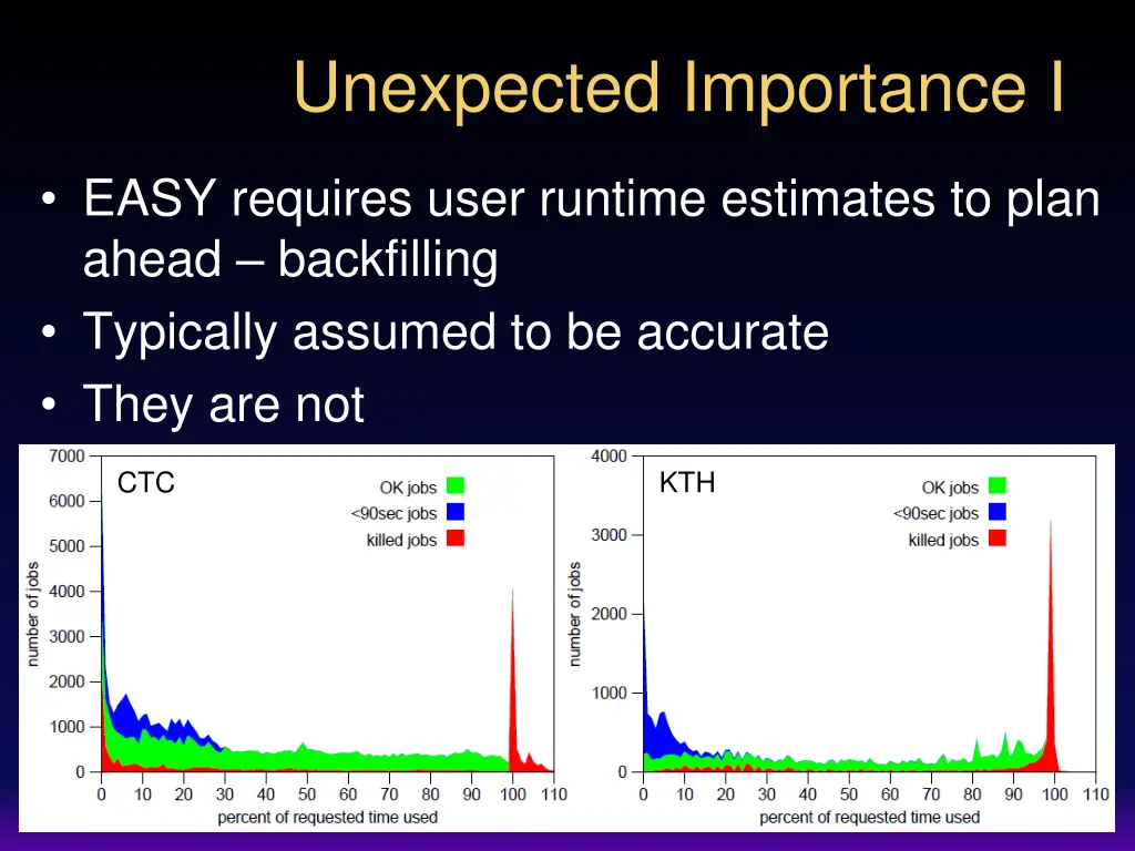 Unexpected Importance I EASY requires user runtime estimates to plan ahead backfilling Typically assumed to be accurate They are not CTC KTH