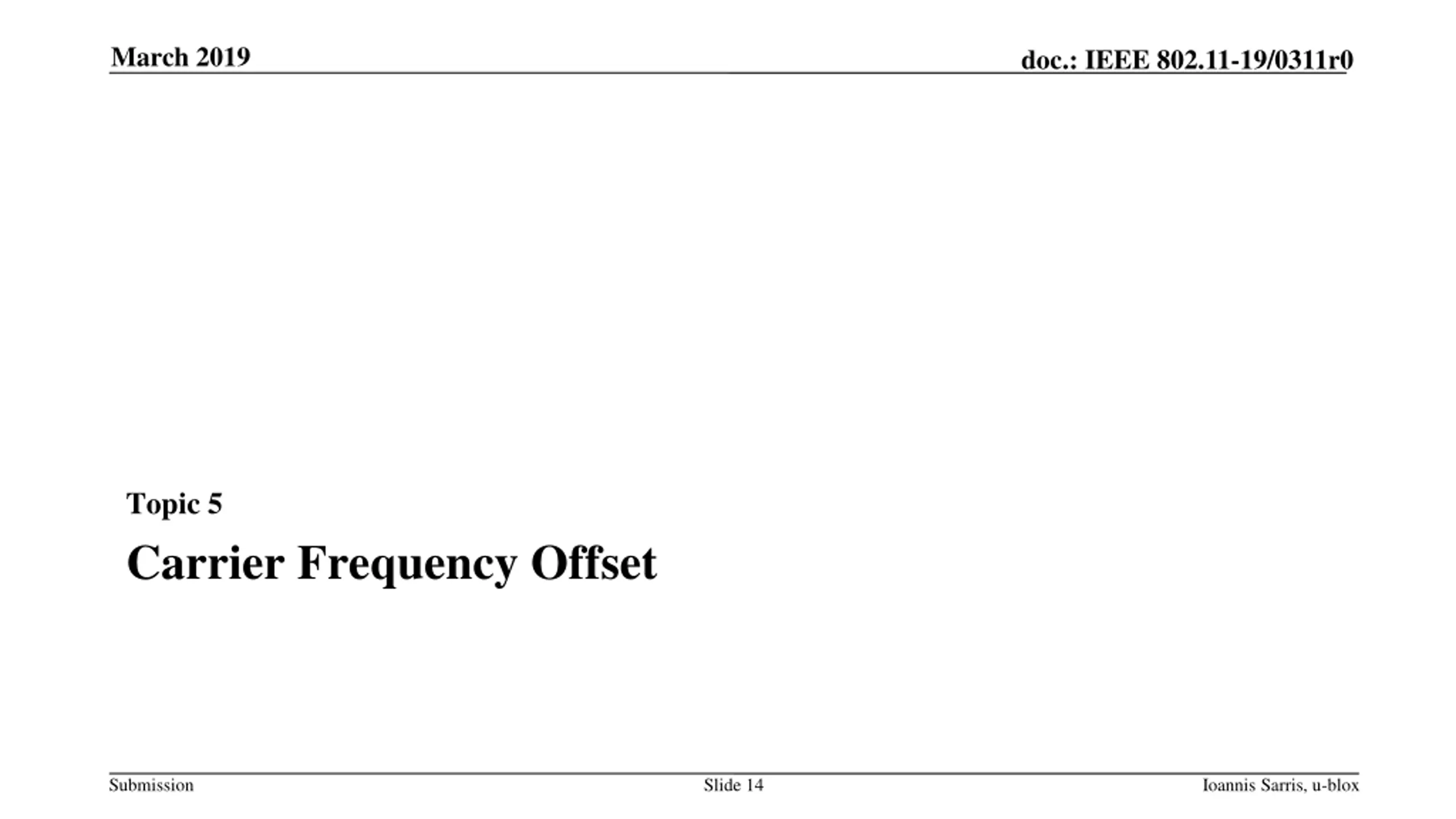 March 2019 doc.: IEEE 802.11-19/0311r0 Topic 5 Carrier Frequency Offset Submission Slide 14 Ioannis Sarris, u-blox