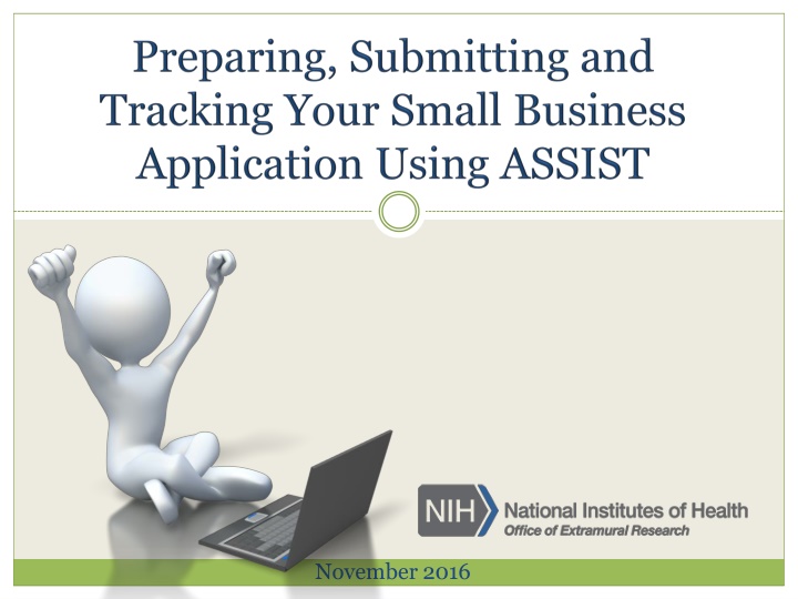 Find out how to utilize the NIH ASSIST system for preparing, submitting, and tracking grant applications to NIH through Grants.gov. Learn about the registration process, submission options, and valuable resources available to assist you. ASSIST streamlines the application process by ensuring compliance with NIH guidelines and providing secure data entry features for collaborative efforts.