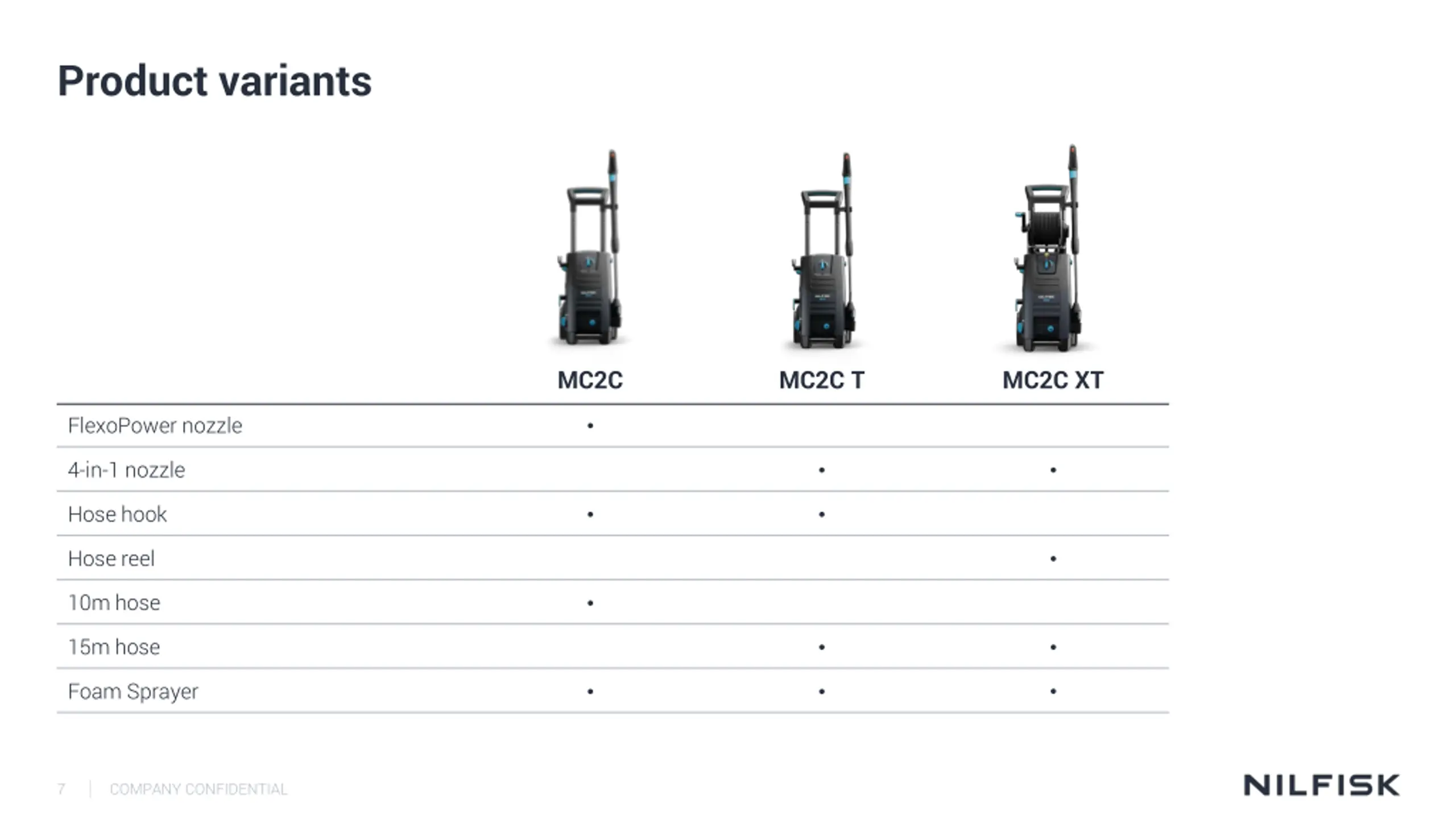 Product variants MC2C MC2C T MC2C XT FlexoPower nozzle 4-in-1 nozzle Hose hook Hose reel 10m hose 15m hose Foam Sprayer 7 COMPANY CONFIDENTIAL