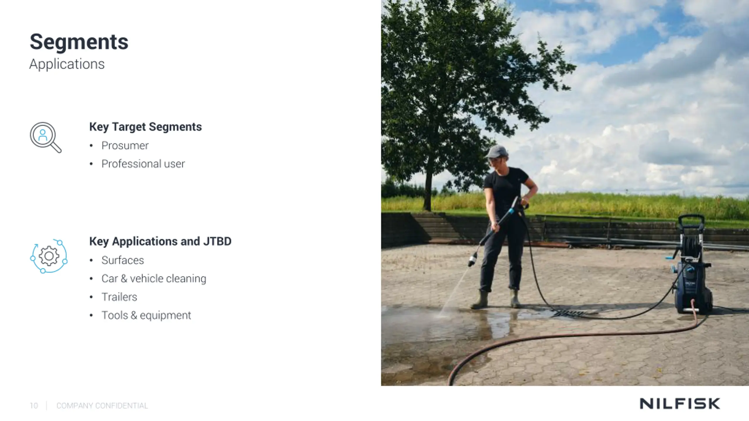 Segments Applications Key Target Segments Prosumer Professional user Key Applications and JTBD Surfaces Car & vehicle cleaning Trailers Tools & equipment 10 COMPANY CONFIDENTIAL