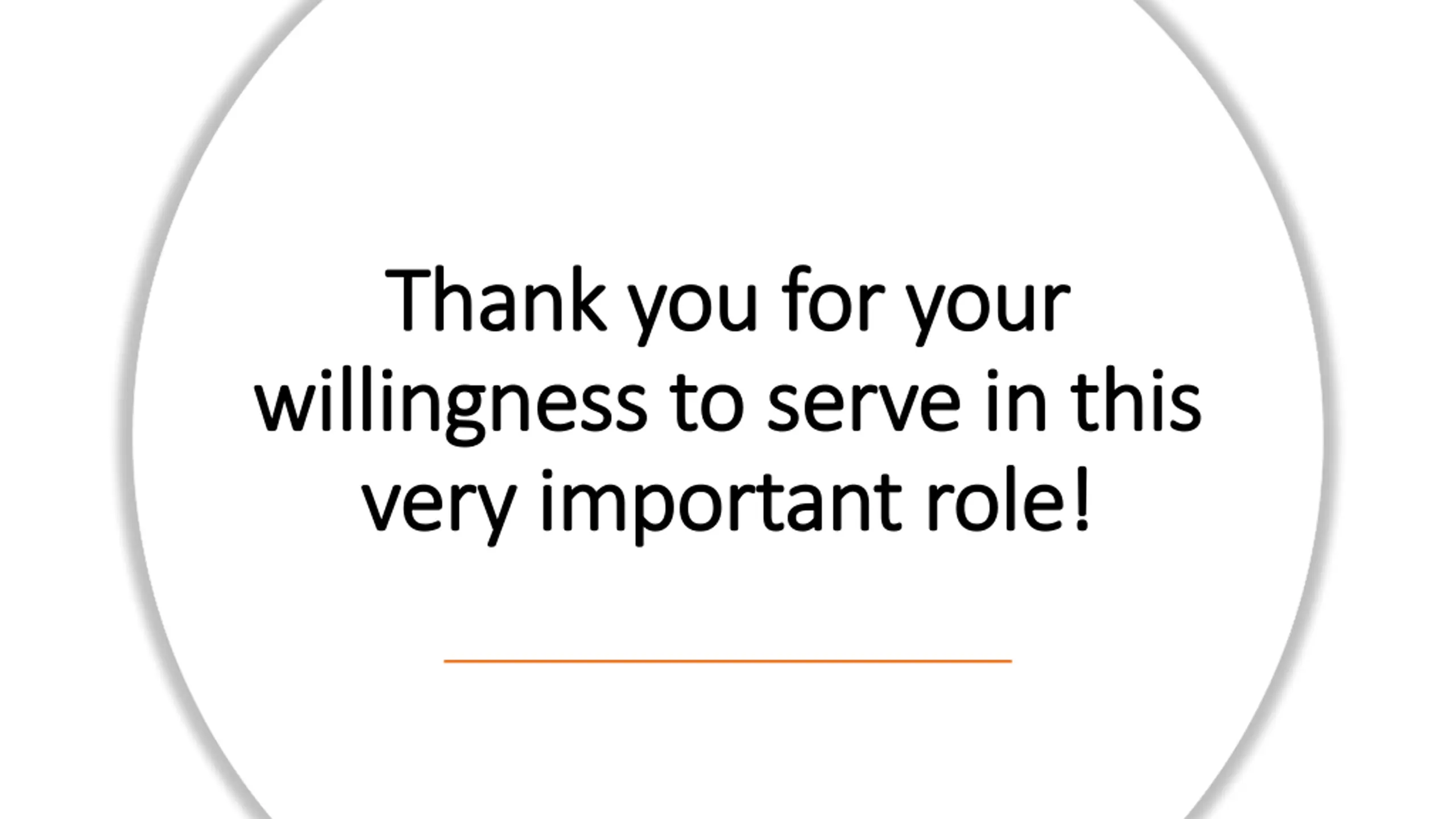 Thank you for your Thank you for your willingness to serve in this willingness to serve in this very important role! very important role!