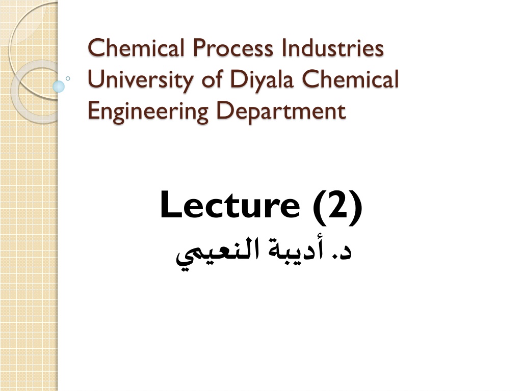 Chemical Process Industries University of Diyala Chemical Engineering Department Lecture (2) .