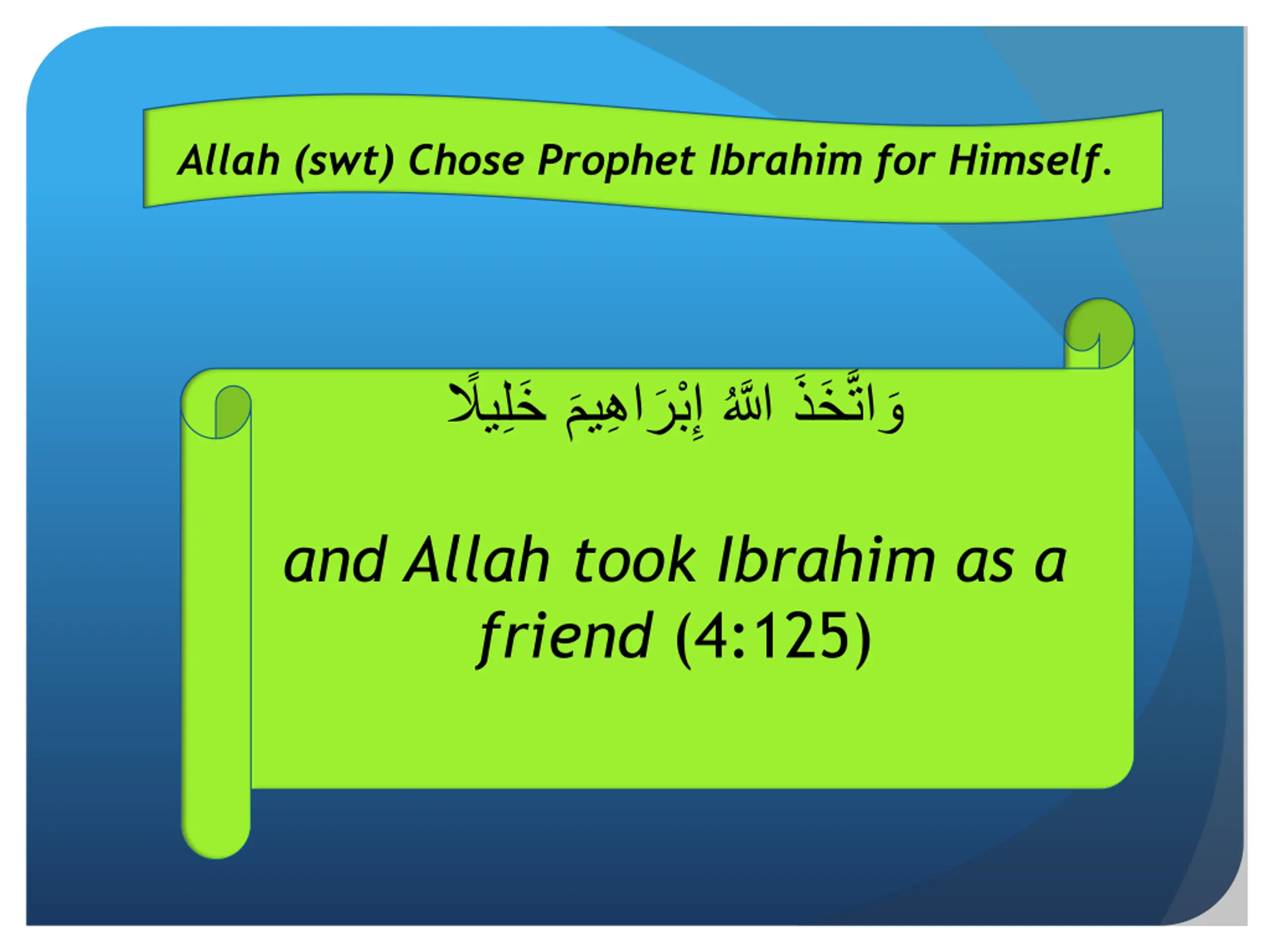 Allah (swt) Chose Prophet Ibrahim for Himself. and Allah took Ibrahim as a friend (4:125)
