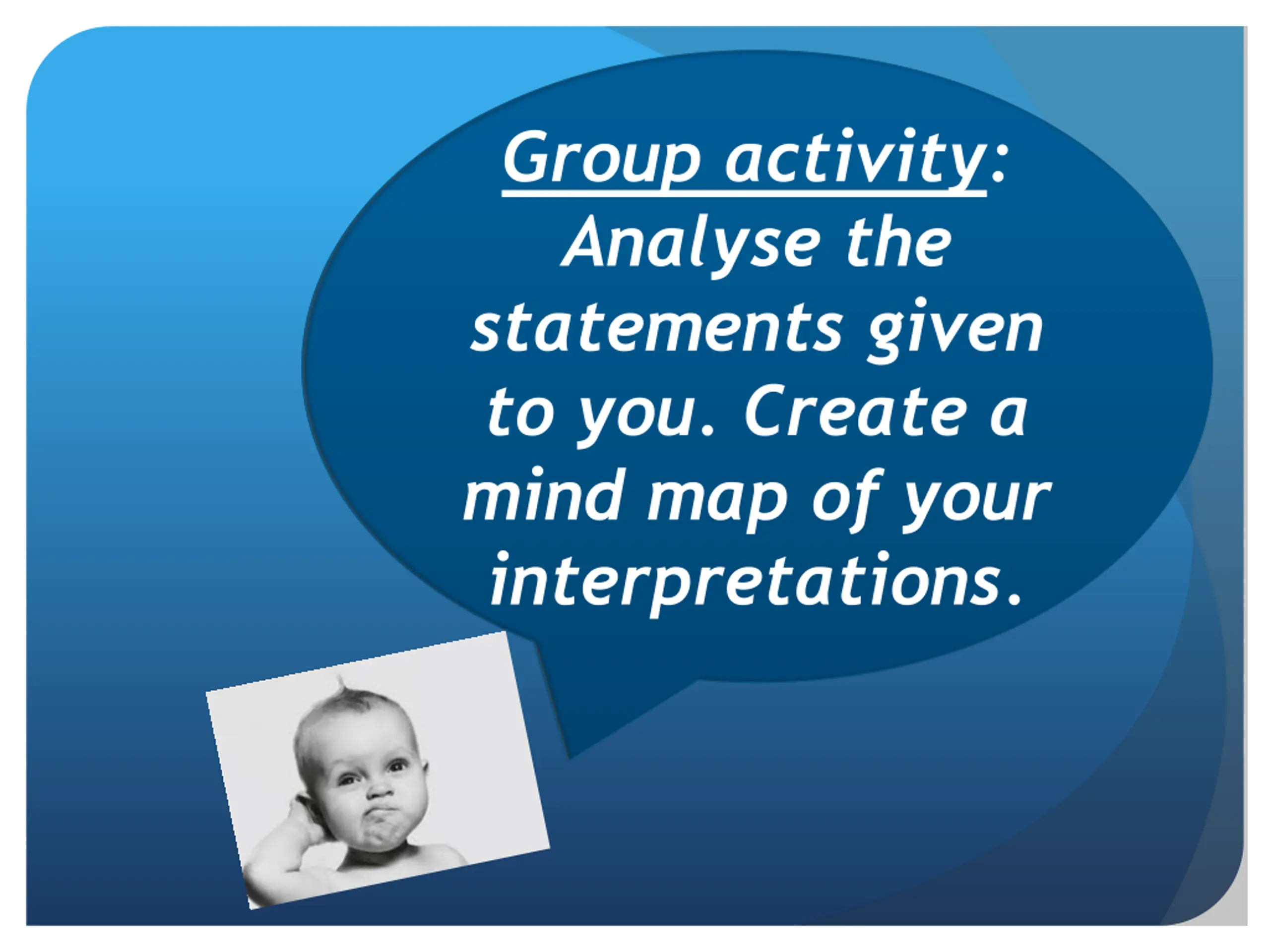 Group activity: Analyse the statements given to you. Create a mind map of your interpretations.