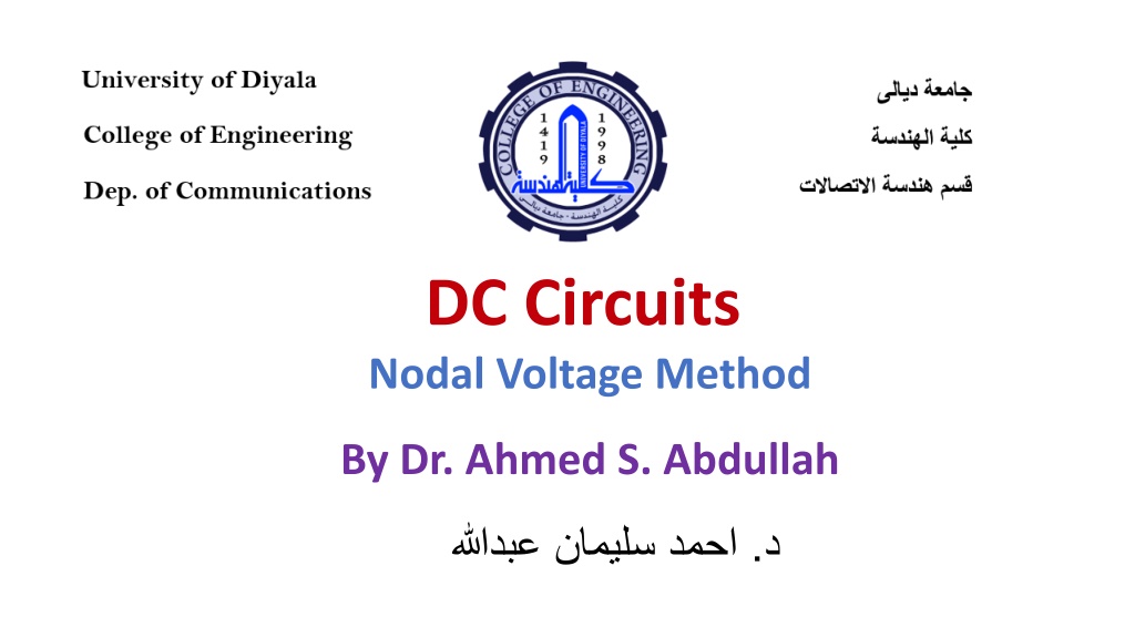 DC Circuits Nodal Voltage Method By Dr. Ahmed S. Abdullah .
