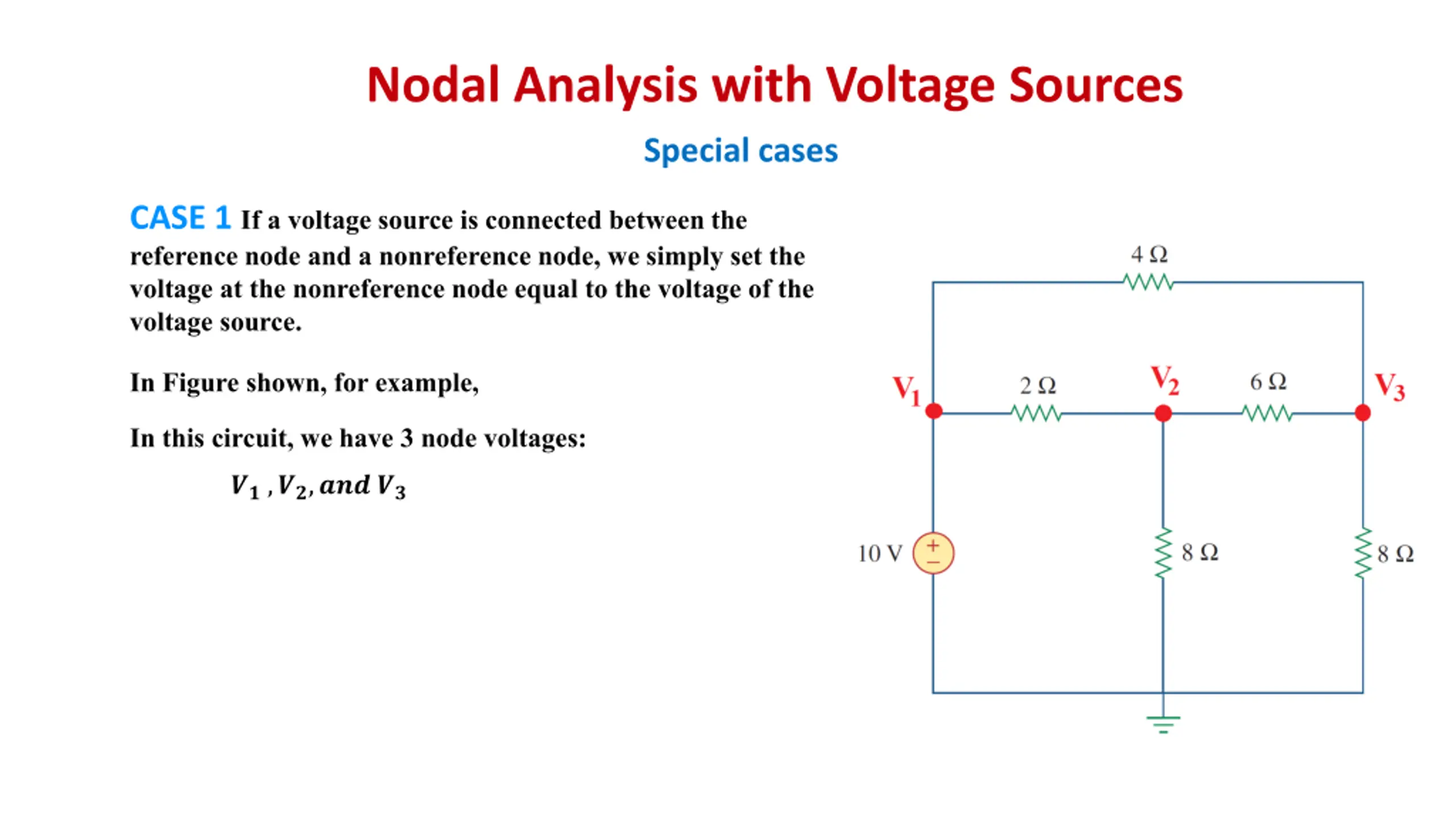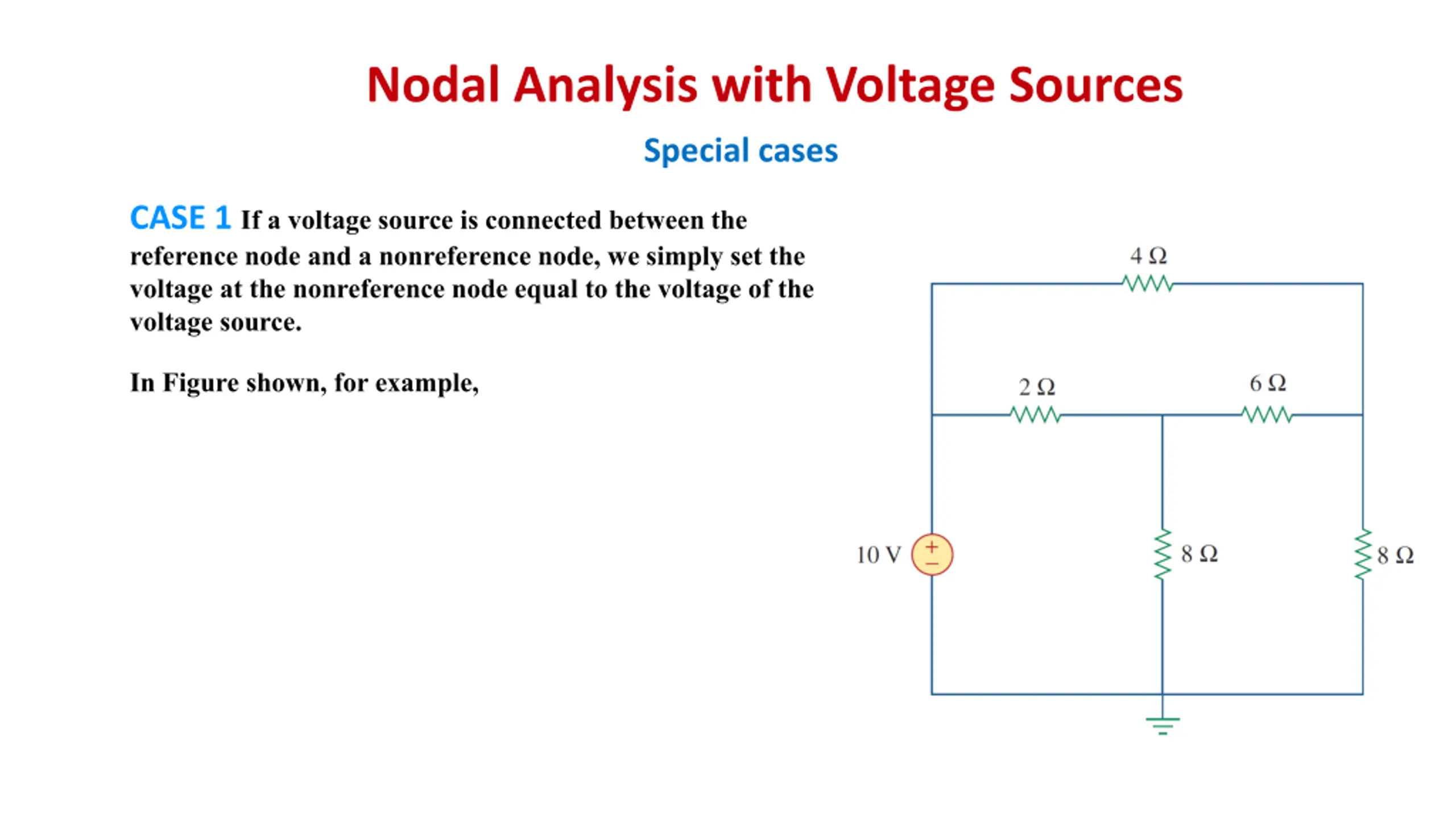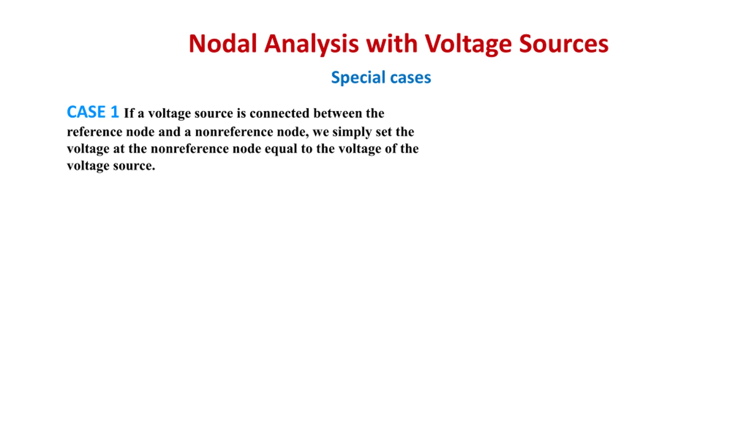 Nodal Analysis with Voltage Sources Special cases CASE 1 If a voltage source is connected between the reference node and a nonreference node, we simply set the voltage at the nonreference node equal to the voltage of the voltage source.