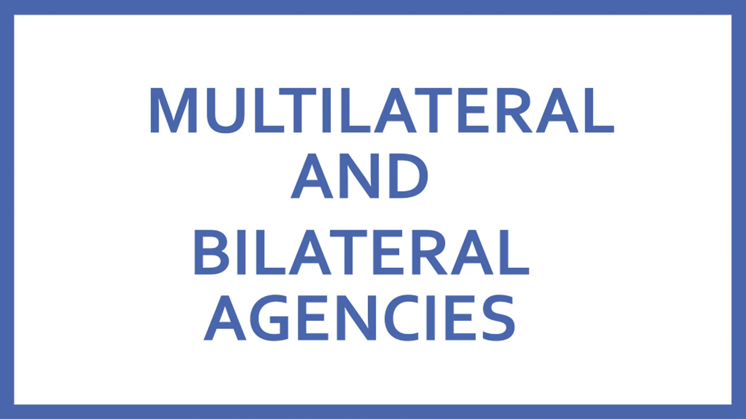 Examples of Multilateral Agencies World Health Organization World Bank UNICEF (United Nations International Children s Education Fund) UNDP (United Nations Development program)