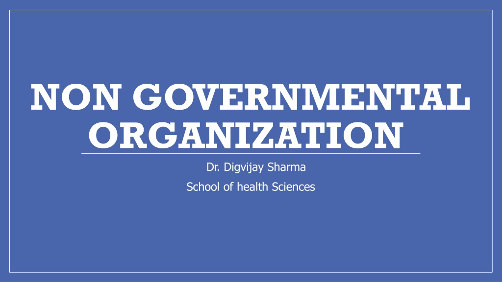 NON GOVERNMENTAL ORGANIZATION Dr. Digvijay Sharma School of health Sciences