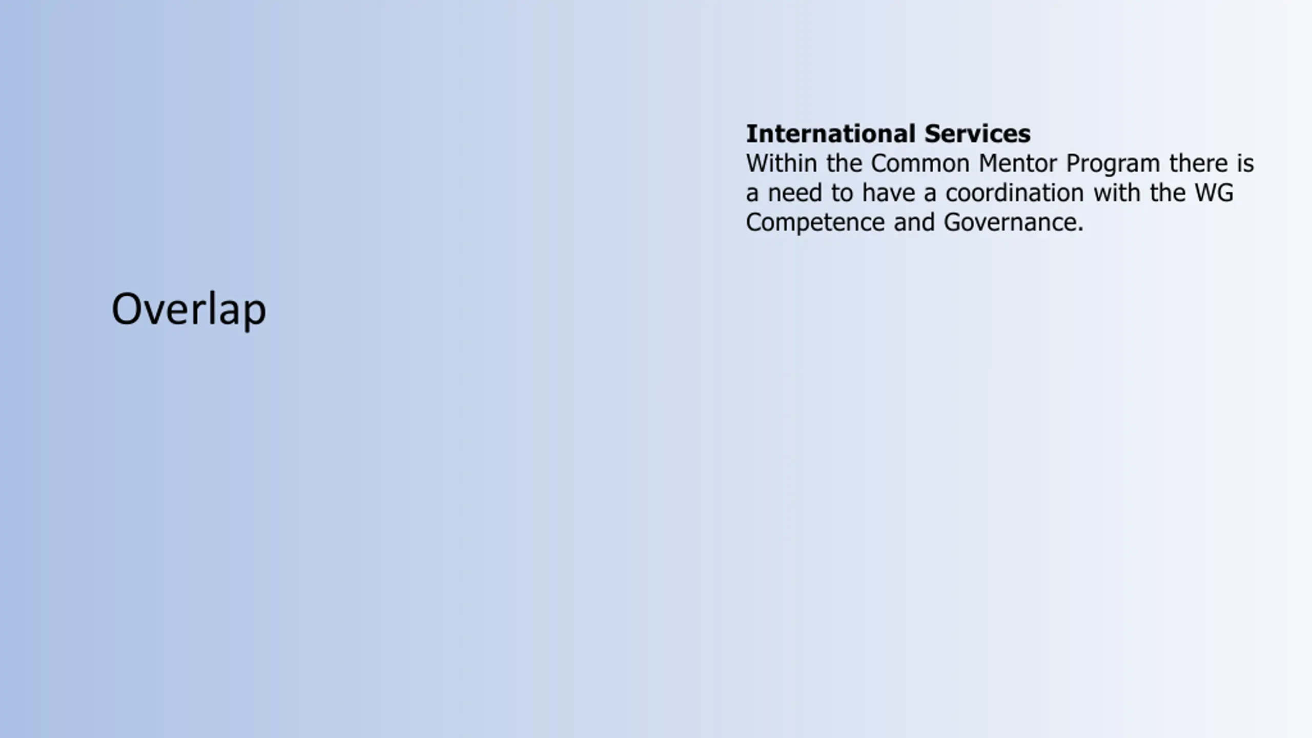 International Services Within the Common Mentor Program there is a need to have a coordination with the WG Competence and Governance. Overlap