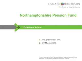 The Northamptonshire Pension Fund Investments, managed by Richard Perry, follows regulations like the Local Government Pension Scheme Regulations. The fund structure includes investments in equities, bonds, diversified growth funds, private equity, and property. Investments are managed by professional managers, and performance is regularly reviewed to meet predefined objectives. Funding levels and deficits are assessed through formal actuarial valuations by Hymans Robertson.