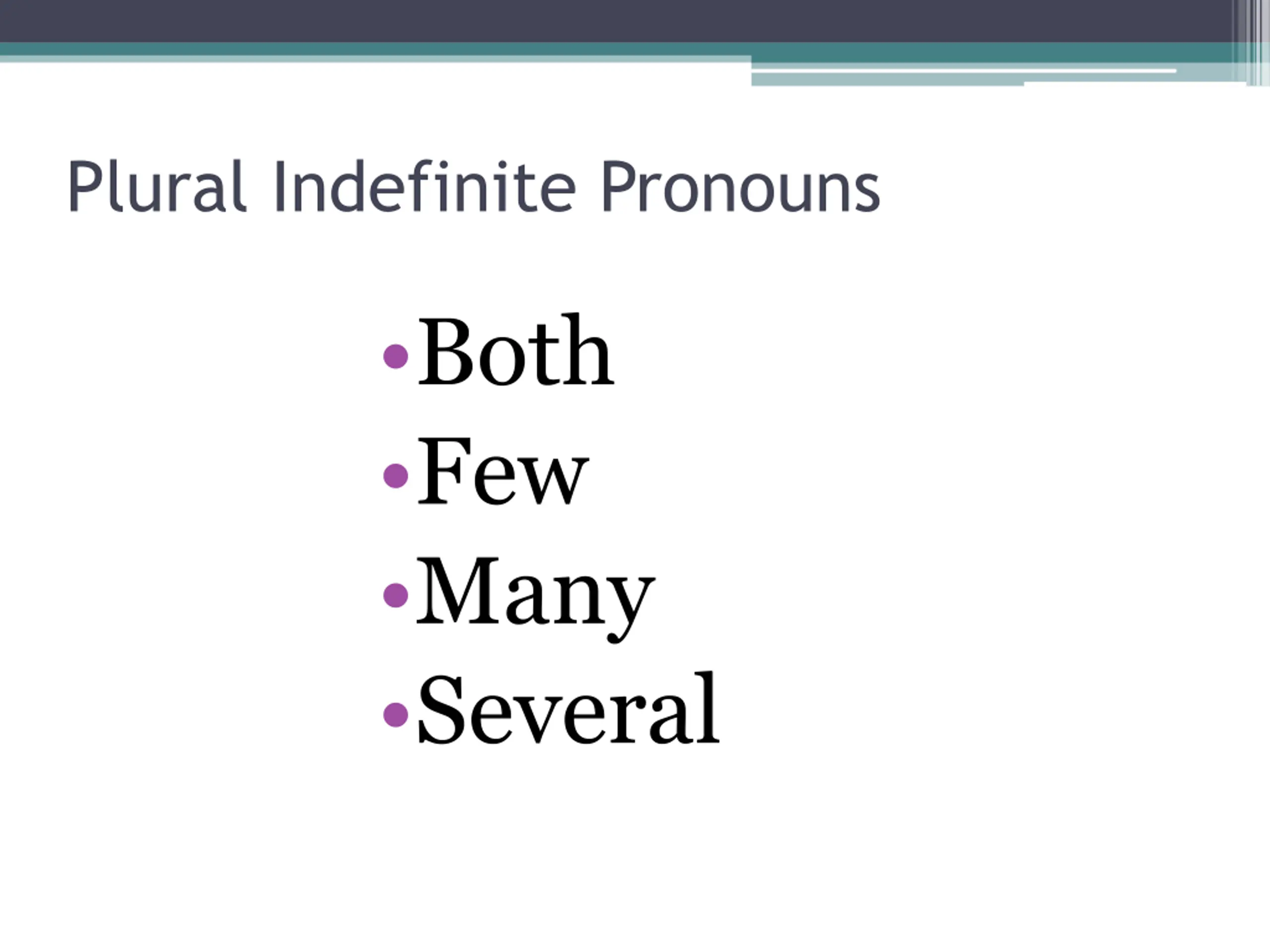 Plural Indefinite Pronouns Both Few Many Several