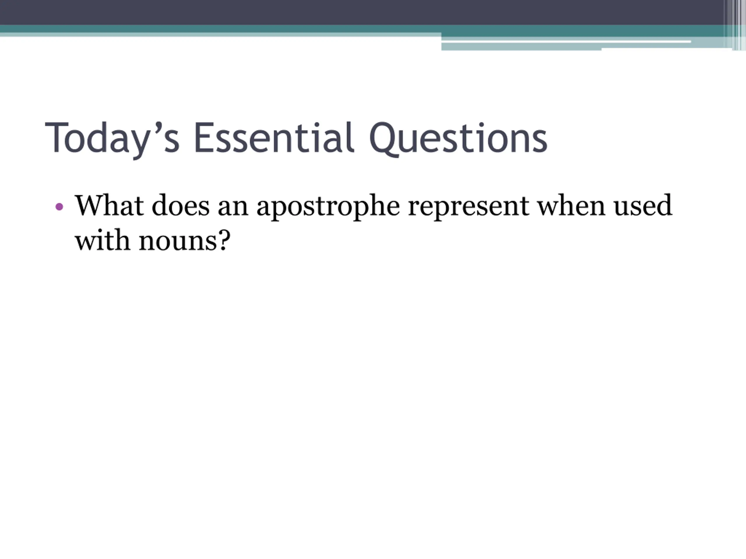 Todays Essential Questions What does an apostrophe represent when used with nouns?
