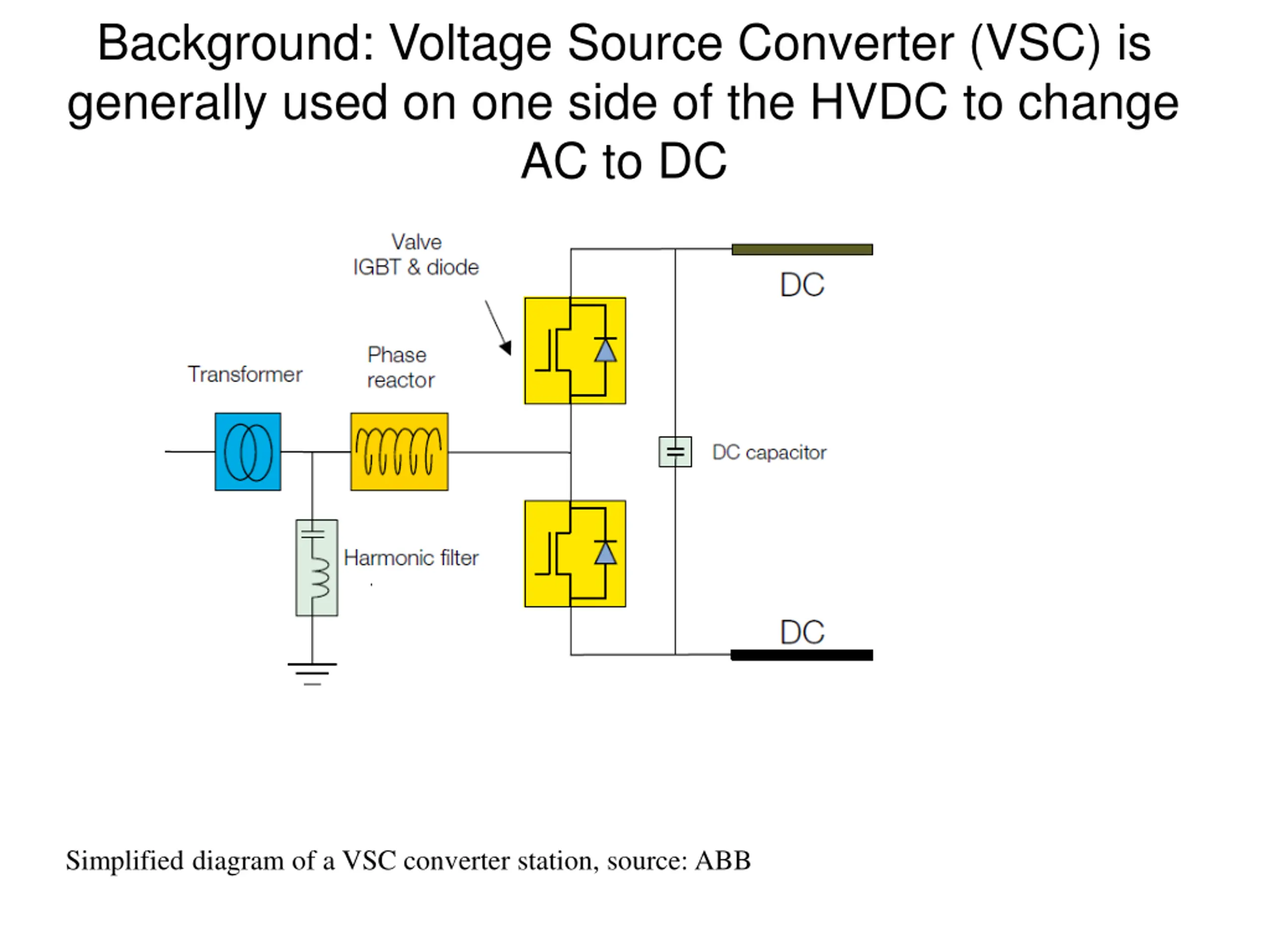 Background: Voltage Source Converter (VSC) is generally used on one side of the HVDC to change AC to DC Simplified diagram of a VSC converter station, source: ABB
